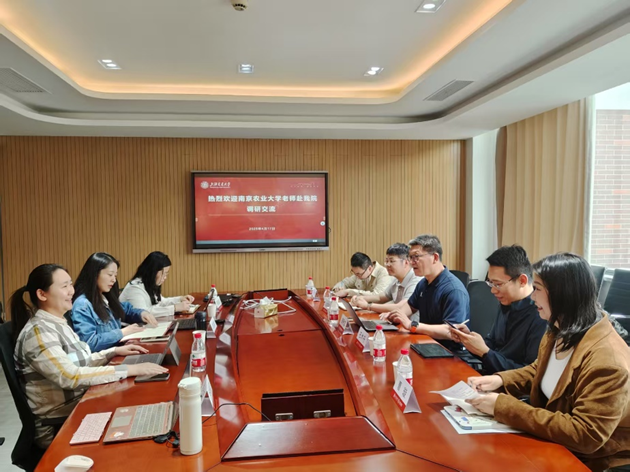 张怡凡介绍学院学生工作队伍的组织架构及特色工作模式,期待与南京农业大学开展深度合作。双方聚焦国际交流合作机制建设、精准资助育人模式创新、特色人才培养体系等议题进行深入交流,通过典型案例分享相关工作经验。