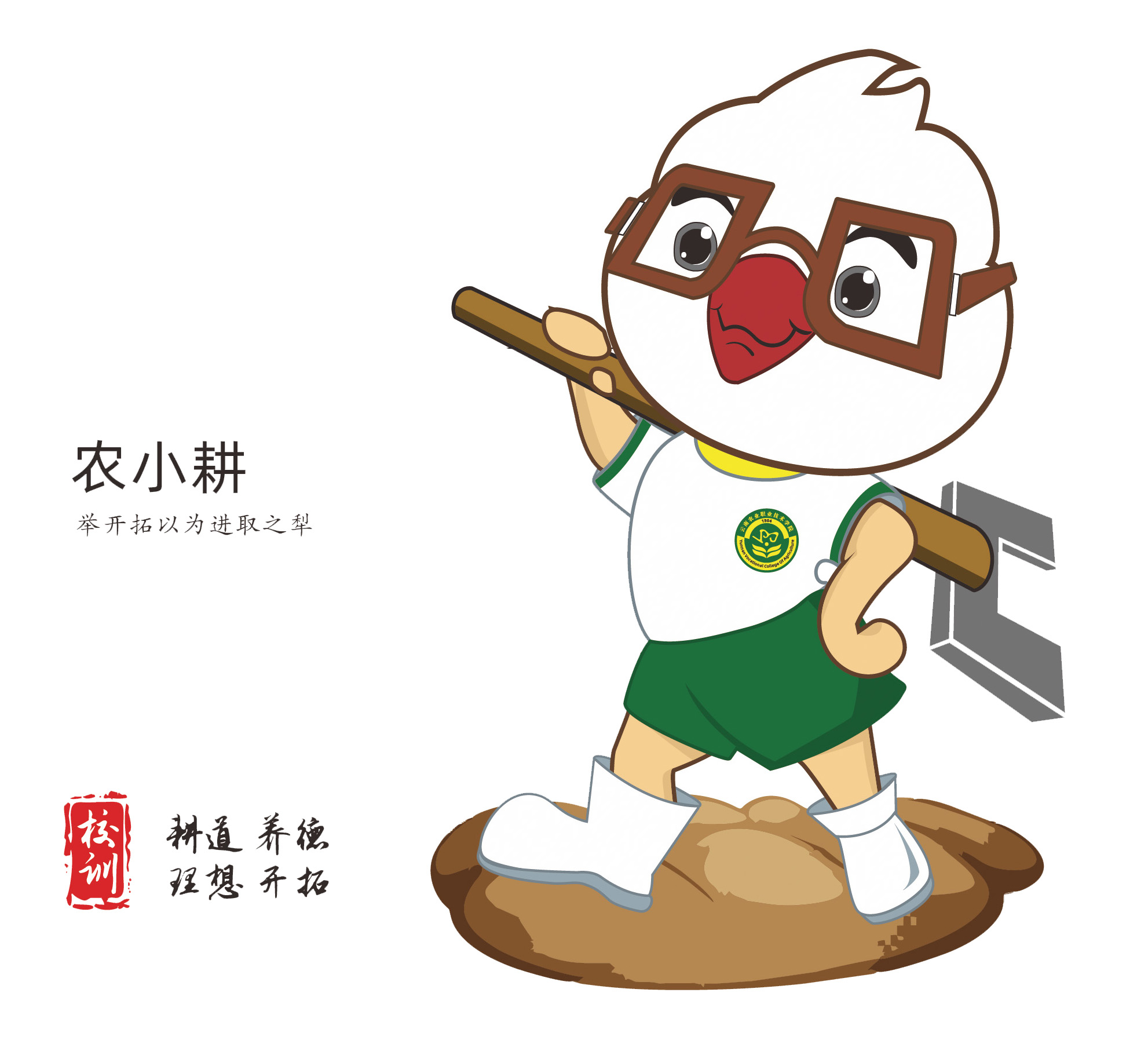 春耕、夏耘、秋收、冬藏,四者不失时,故五谷不绝,布谷处处催春种,顺时春耕,应农耕之道。吉祥物由布谷鸟形象演化而来,有着简约活力的发型、精致可爱的五官,服装以农职绿为主要用色,左胸前印有校徽图案,使其兼具文化内涵,给人以自信阳光、知农爱农的风格意象。吉祥物造型采用昂扬姿态,体现了农职人积极白上、自信自豪的精神风貌。