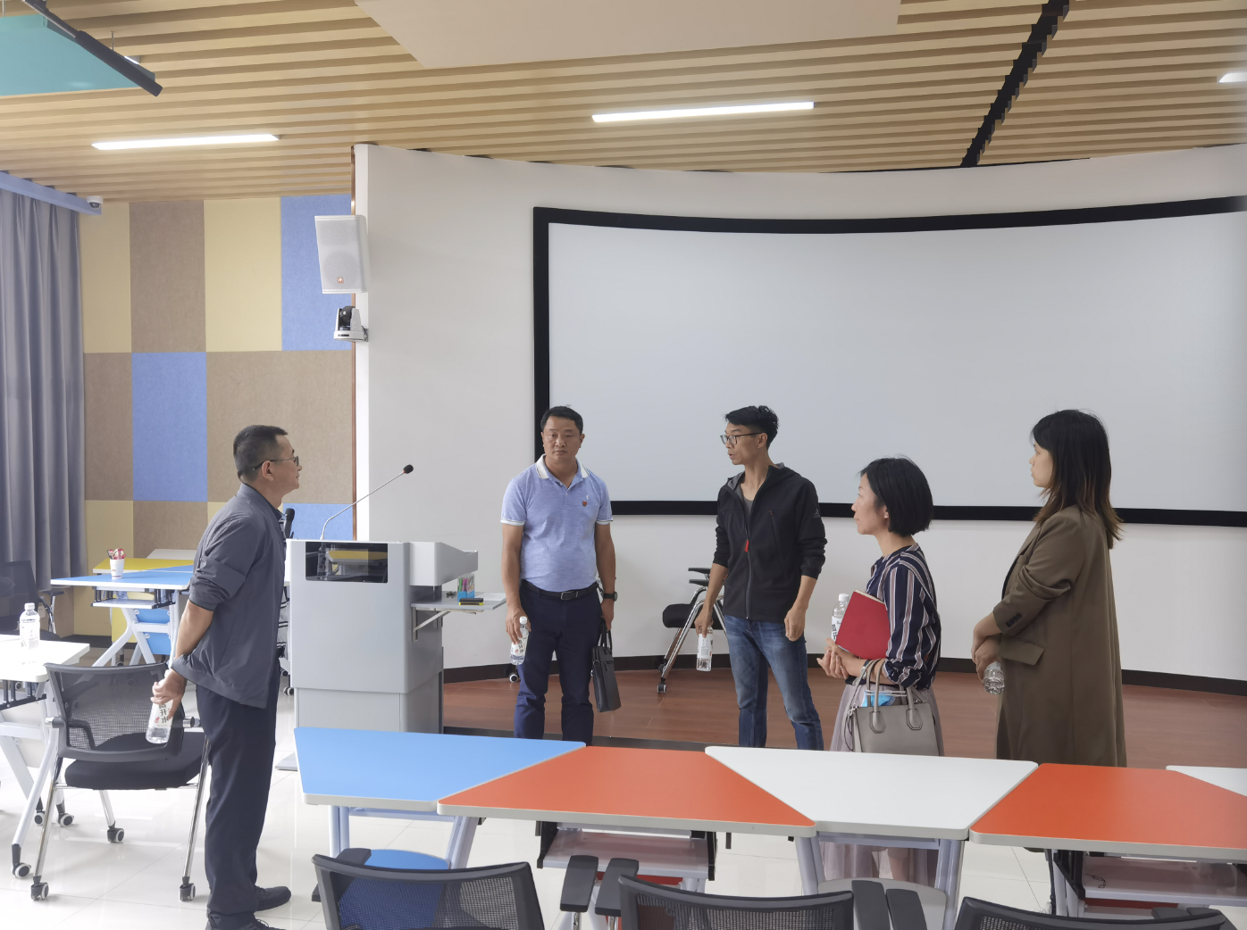 调研工作分为两个阶段,在第一阶段中,调研组一行在产教联盟的带领讲解下通过实地走访的方式调研了我院产教联盟打造的少数民族产品孵化平台、少数民族文化设计中心、少数民族人才孵化平台等。在第二阶段中,验收组一行在产教联盟大厅听取了产教联盟负责人从党建引领民族