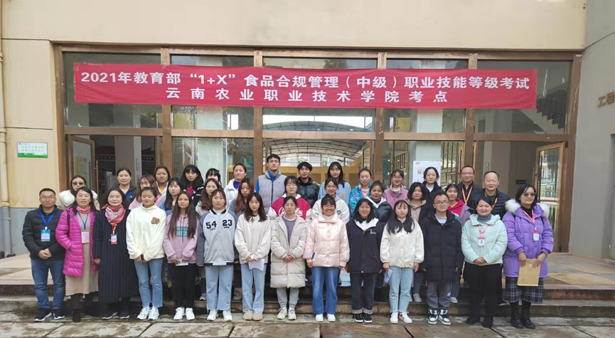 2021年11月,食品药品与大健康学院成功组织1+X食品合规管理职业技能等级证书(中级)云南省首家试点考试,选拔了来自2020级农产品加工与质量检测、食品检验检测技术、食品质量与安全和食品药品监督管理等四个班30名学生参加考试,考试通过率100%。