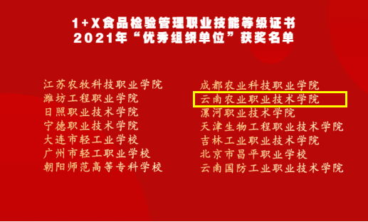 通知中心4月8日,2022年1+X食品检验管理职业技能等级证书试点工作说明暨2021年度表彰大会在北京举行,试点院校通过线上平台参会,我院获“优秀组织单位”和“创新教师团队”奖。