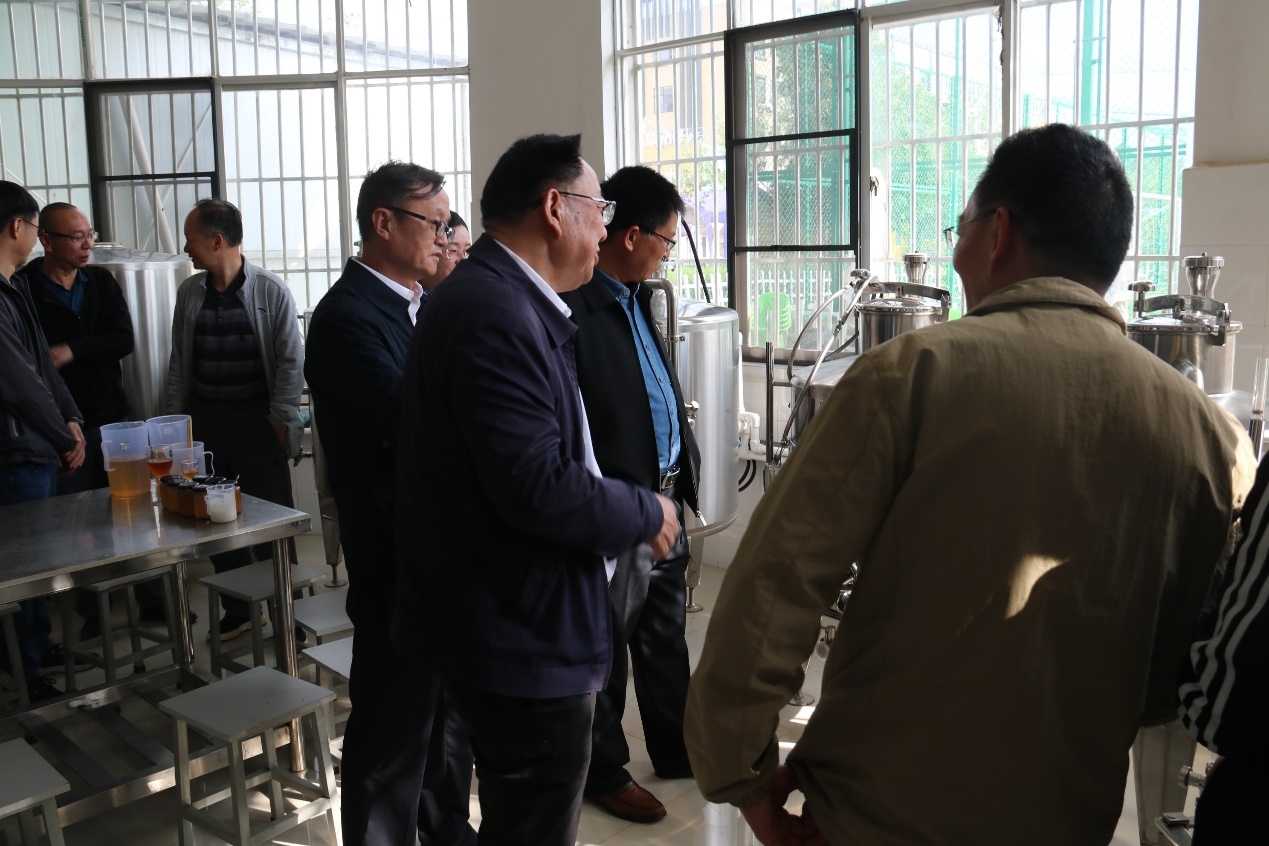 通知中心调研中,学院领导一行参加了在食品加工与烹饪中心举行的果酒酿造及食品加工成果展示、座谈活动。考察了学院果酒酿造工程技术研究中心,李自强教授带领优秀学生代表,对果酒果醋的制作从种植、采摘和发酵等详细工艺行了介绍。学院领导表示对食品类专业的未来发展前景充满了希望,希望本专业的学生能够做到,坚持苦练基本功,提升技术水平,做放心食品、安全食品,以维护广大人民群众的身体健康为己任,为社会主义建设奉献自己的力量。