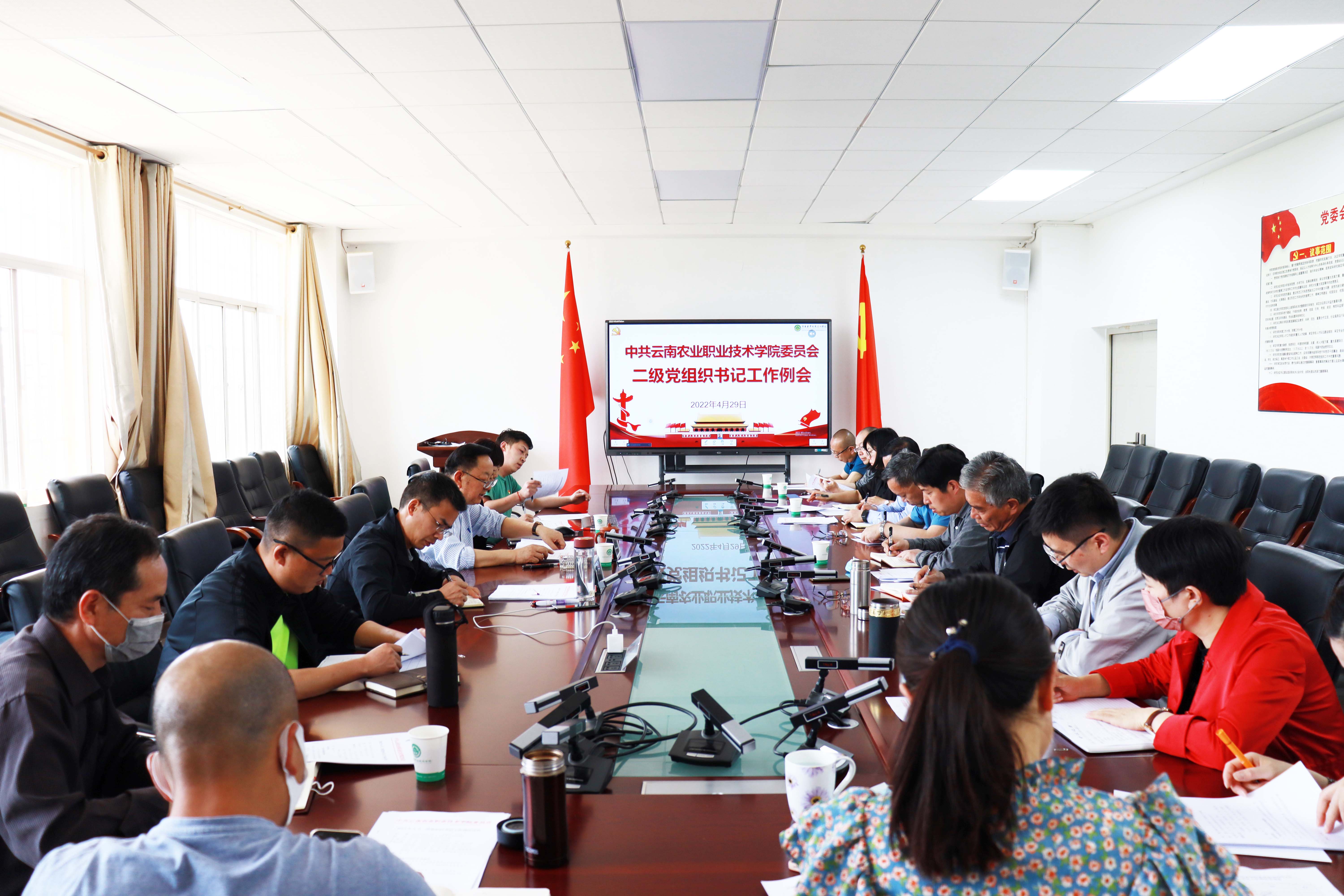 4月29日下午,学院党委在小哨校区综合楼四楼会议室召开二级党组织书记4月工作例会,文俊院长、伍学龙副书记,各二级党组织书记,纪检处、组织部、宣传部、统战部、学生工作部、团委、工会、妇联等部门主要负责人,组织部有关工作人员参加会议。会议由党委副书记、院长文俊同志主持。