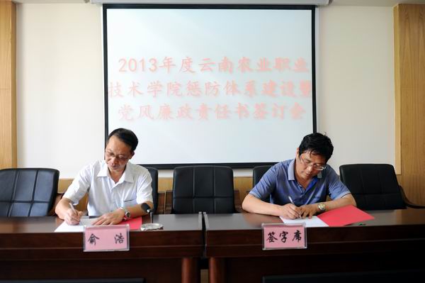 会上,由院领导按分管部门权限和各部门负责人现场签署《2013年beat365在线唯一官网惩防体系建设暨党风廉政建设责任书》。