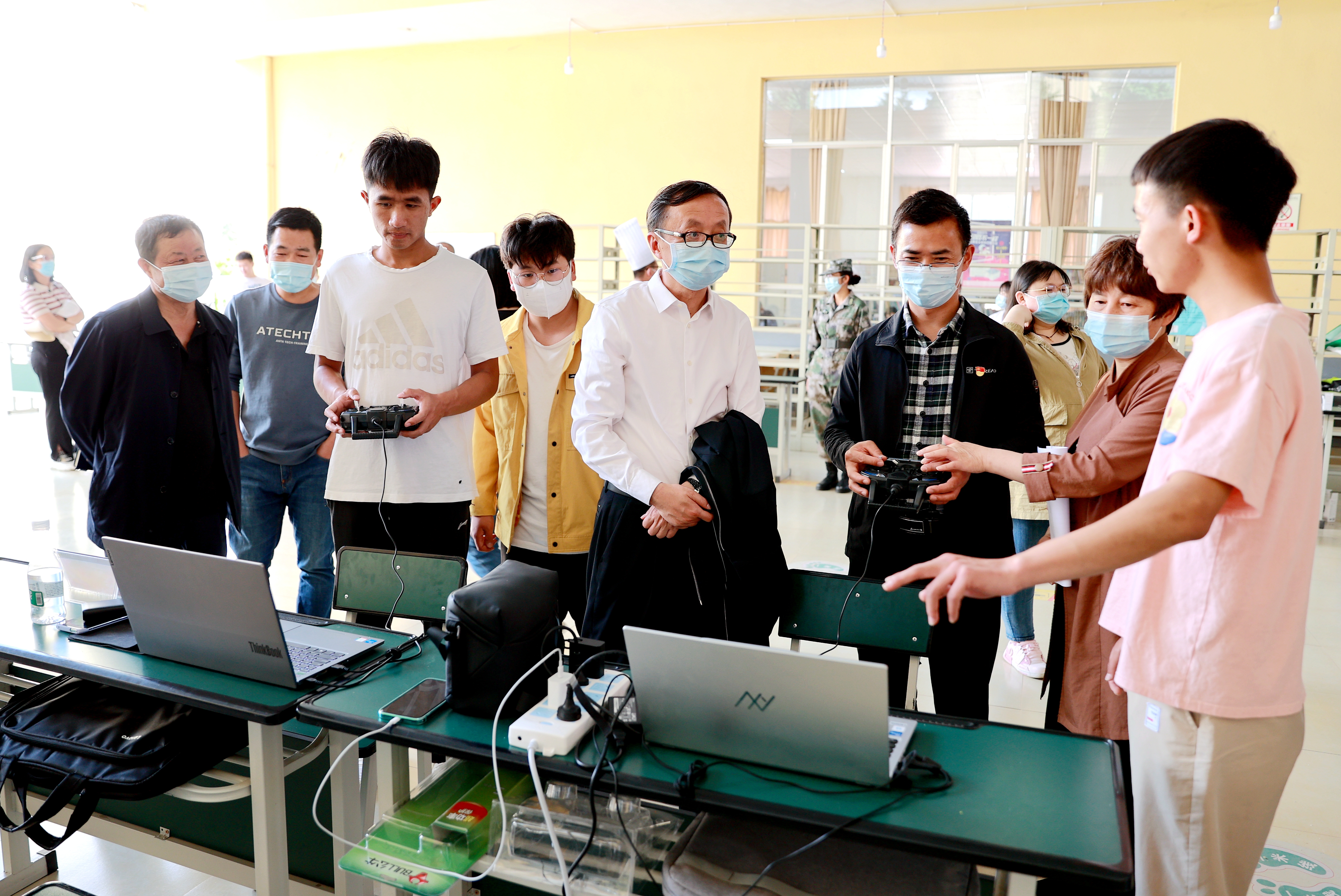 当日下午,职业技能展示在图书馆一楼大厅举办,党委副书记伍学龙、纪委书记冯志宏、副院长雷衡、苏华伟、田应华莅临现场观看展示作品,师生们用扎实的技术功底、高超的技术水平和良好的精神风貌展示了各自的作品。