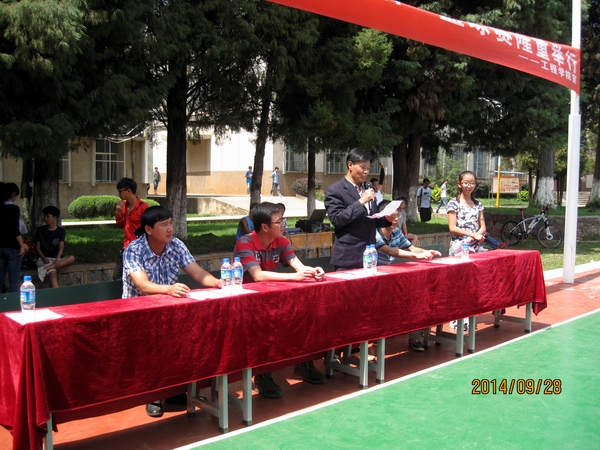 院长李一源老师宣布工程学院首届“迎新杯”篮球赛开幕。