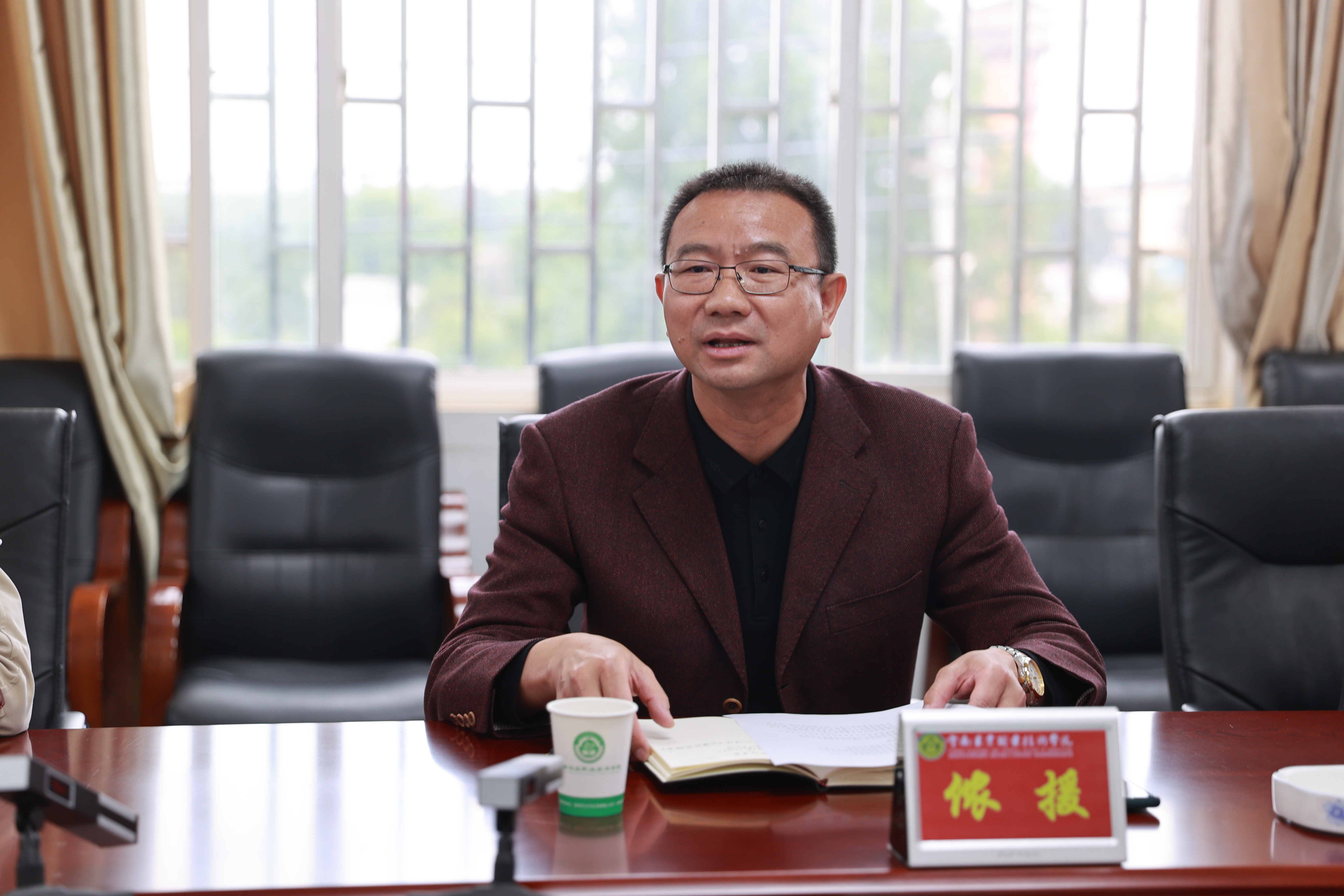 文山农业学校党委书记、校长侬援介绍了文山农业学校的发展情况,他表示到学院交流的目的主要是学习了解畜牧兽医专业实训室建设情况;学习了解生产实训基地校企合作、产教融合情况。相信通过学院的“传经送宝”,一定能够拓展思路,共谋发展。