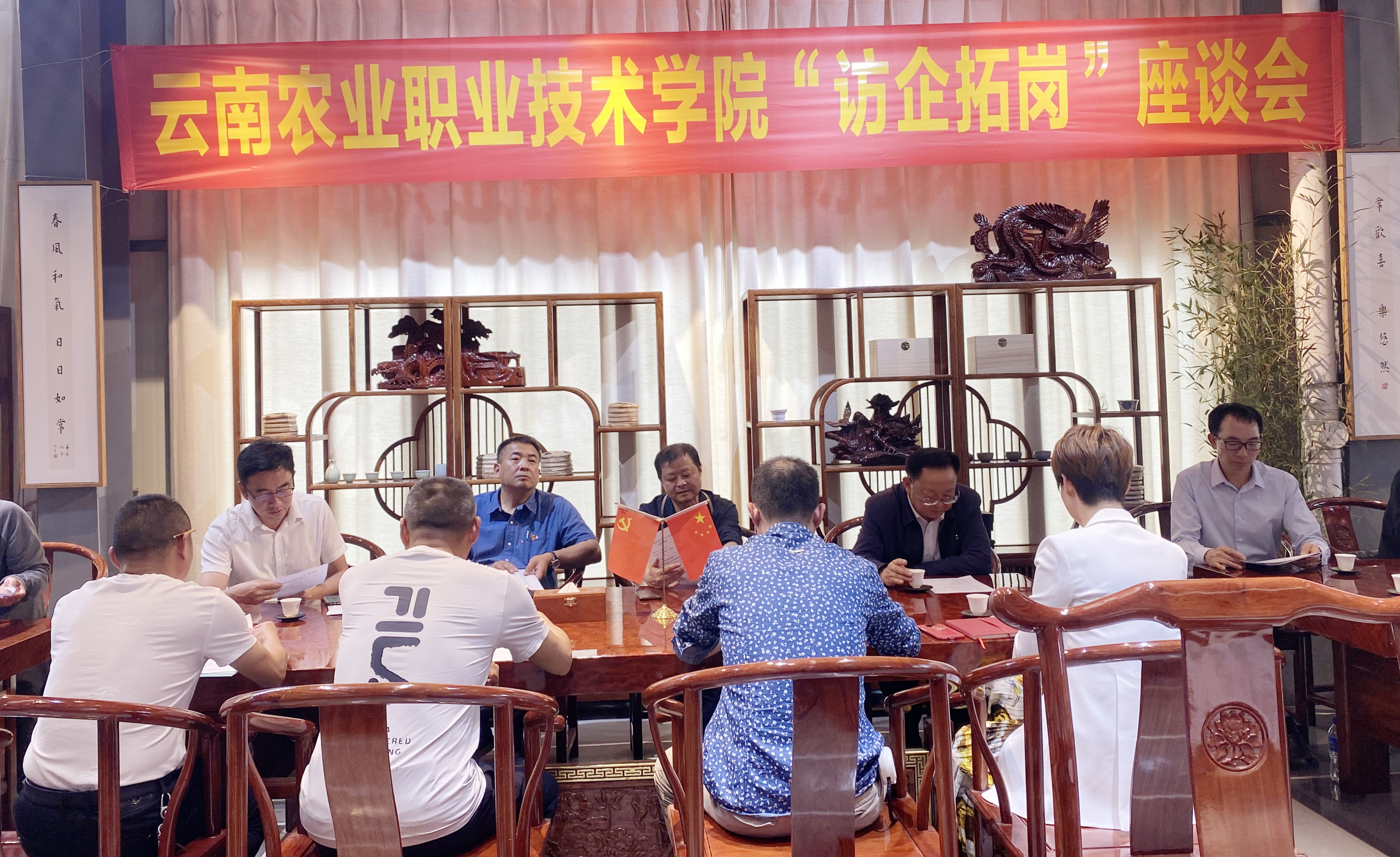 5月19日下午,学院党委书记文俊一行8人赴“云安农林天下”产业园区开展访企拓岗活动,与昆明云安会都有限公司总经理李艾奚云南培华教育投资有限公司董事长兰靖云南云安置业有限公司总经理李志国云南龙润茶业集团总裁李延广昆福木材工厂店负责人翁梅香三毛红木家具负责人杨凤琼世晖木业负责人李峰泓钧木业负责人曾长勇嘉林木业负责人陈阿豹云南百年红木业有限公司负责人刘和春云南孺子牛木业有限公司负责人李亚伟11家企业的代表举行座谈会。