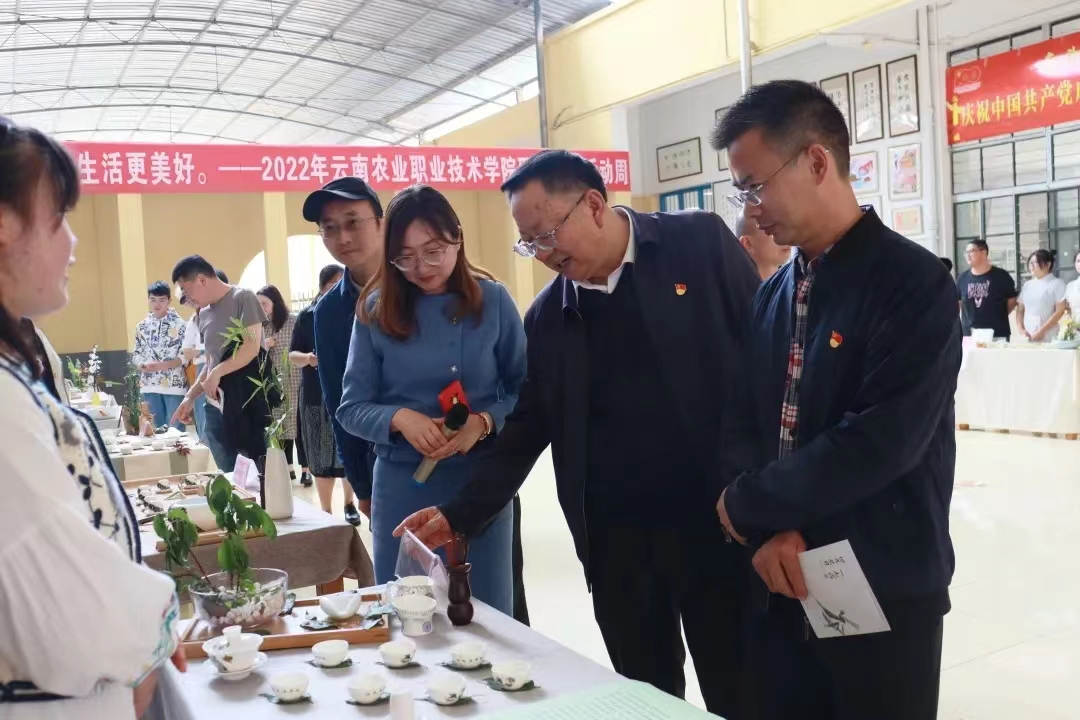 2022年5月19日,在第三个国际茶日来临之际,为了在校园中推广普及茶文化、弘扬中华传统文化、增强文化自信,实现教学工作与团学工作在人才培养过程中的一体化。由农学园艺技术学院团总支、教学办共同举办了以“爱茶爱生活 有梦有精彩”为主题的茶席设计比赛,此次比赛为beat365在线唯一官网职业教育周的延续。党委书记文俊、党委副书记伍学龙、纪委书记冯志宏等学院领导出席本次活动,并观看茶席设计作品。