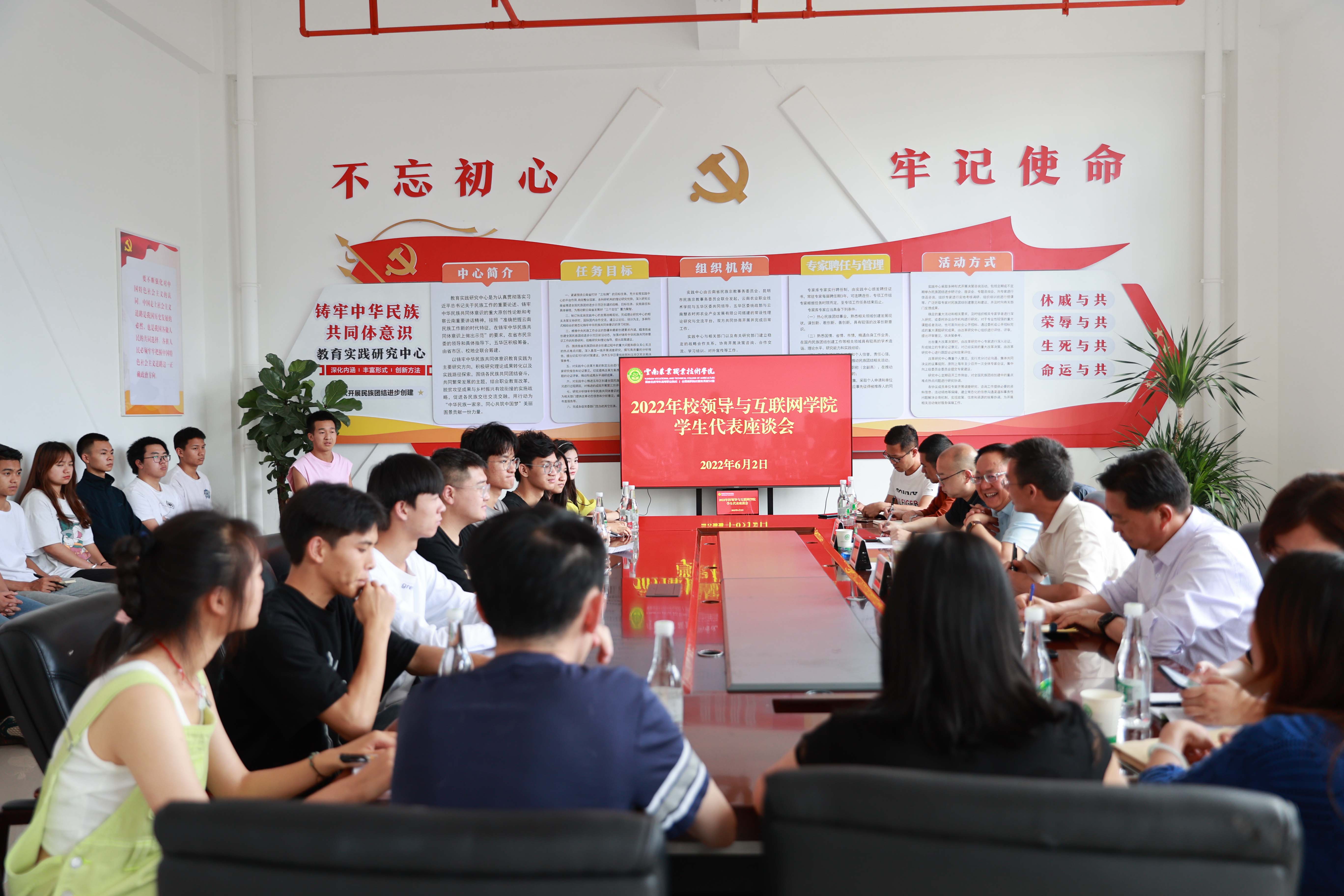 文俊书记讲话。他表示,座谈会的召开体现了学院党委对互联网学院的重视和支持,职业教育的特点是专业一定要和产业紧密对接,互联网技术学院应该成为最有特色、最有亮点的专业。文俊书记强调,没有学生就没有学校,要尊重学生的主体地位,坚持以学生为中心,为学生办实事解难题。他要求在场的各职能部门负责人要主动认领、认真研究,能及时解决就立即整改,对在职责范围内的问题抓紧解决落实,确保同学们反映的问题“件件有落实、事事有回音”。同时,文俊书记为同学们介绍了学院118年耕耘不辍,薪火相传的办学历史,发挥校史育人的作用,进一步增强了同学们对母校的认同感。