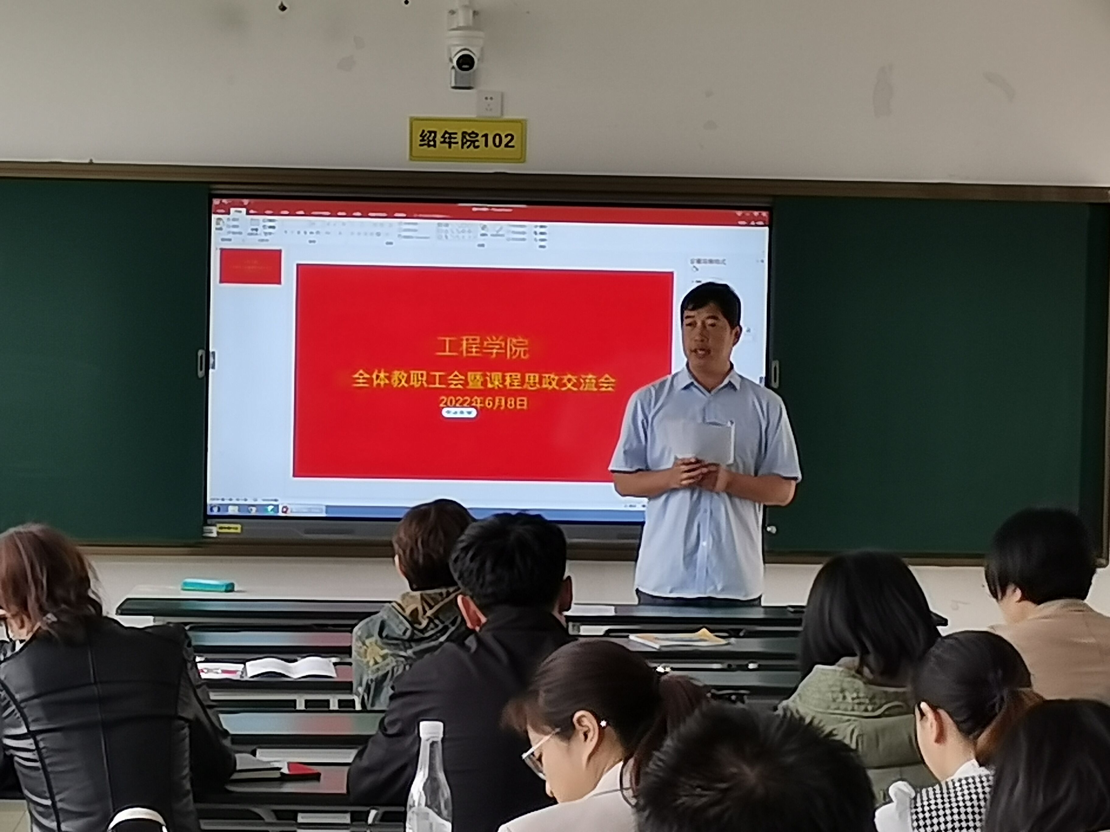 6月8日下午,工程学院在绍年院102举行了“课程思政”公开课活动,进一步推进 “课程思政”建设各项工作。工程学院全体教职工参加了活动, 25名任课教师就本学期承担的课程进行了现场授课。活动由党委委员、工程学院党总支书记王军明同志主持。