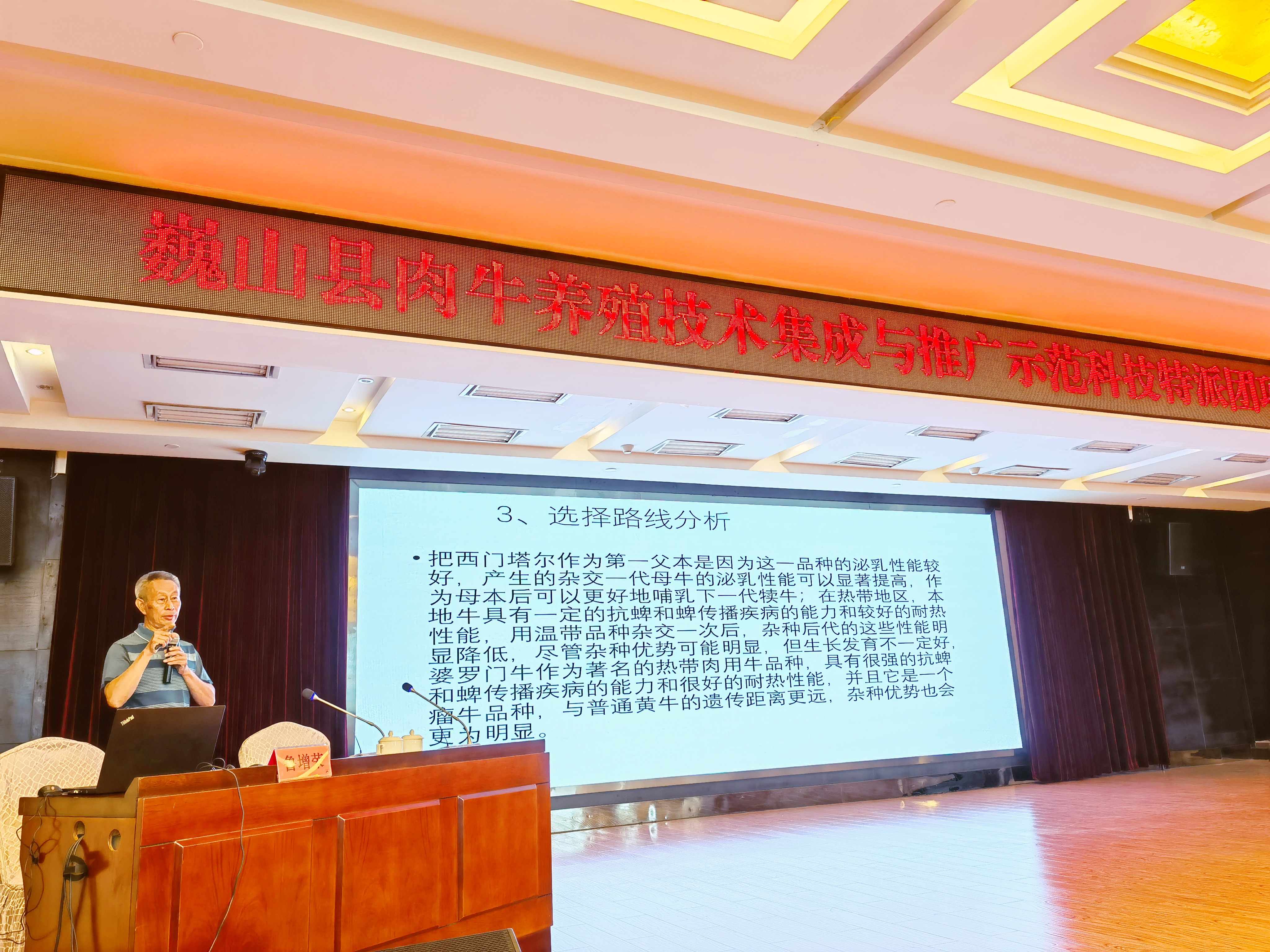 培训班由巍山县农业农村局马冀副局长主持,他重点剖析了巍山县全县肉牛产业发展现状和肉牛产业发展的新机遇,强调了本次培训的重要性。