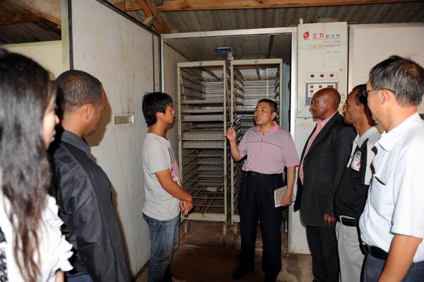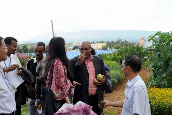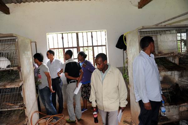 学院还为培训班安排了实地参观考察。9日下午,由余浩副院长陪同非洲朋友前往小哨校区农牧场参观考察校内实训基地。在畜牧兽医系、园艺与园林工程系、生物工程系领导和老师的密切配合下,培训班学员兴致勃勃地参观了养兔场、养鸡场、滇陆猪扩繁场、特种养殖场,参观考察了果树栽培基地、蔬菜栽培基地、花卉园林基地、水稻种植基地、中草药园等,品尝了果树基地的新鲜水果——梨、板栗和核桃。培训班学员所到之处观察细致,虚心好问,认真记录,我院领导和老师热情周到,有问必答,很好地展示了我院现代农业示范基地、云南省高职院校实训示范基地的先进技术和良好的管理水平。10日,培训班还参观了我院校外实训基地——位于宜良县的雪兰公司养牛场。