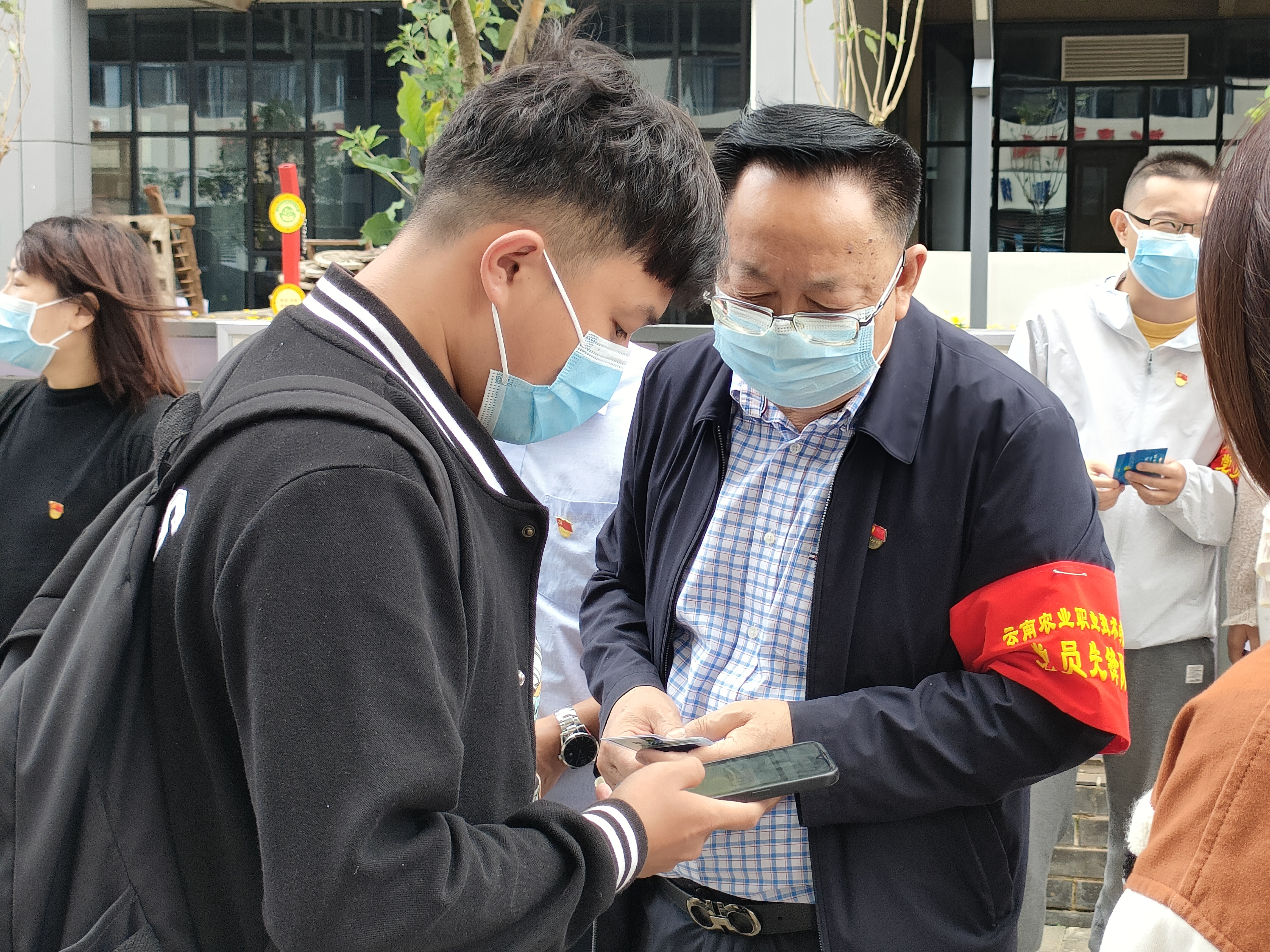 文俊书记带头站好“党员先锋岗”,查验返校学生“两码一报告”