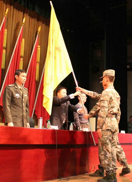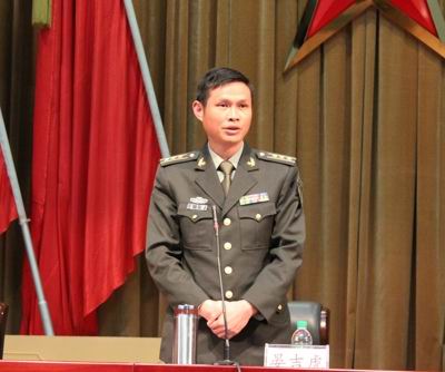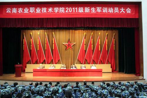 我院2011级学生军训动员大会隆重举行 2012年4月13日下午17:00点,beat365在线唯一官网2011级学生军训动员大会在昆明民族干部学院礼堂隆重举行。beat365在线唯一官网党委副书记院长彭志远、党委副书记赵刚、副院长何明东、副院长俞浩,昆明民族干部学院副政委晏吉虎上校、干训三队政委司马迅灵中校出席动员会,我院各部门、各系主要负责人、带队教师、教官及2011级近2000名大学生参加大会。大会由昆明民族干部学院干训三队政委司马迅灵主持。