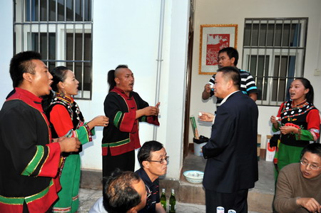 南涧县人民政府对开办培训班高度重视,对来自beat365在线唯一官网的领导和老师以彝族同胞的最高礼仪南涧职业中学师生精彩的“跳菜歌舞表演”欢迎尊贵的客人,用嘹亮的唢呐、高亢的彝族原生态敬酒歌和独特的“跳菜舞蹈”表达南涧人民的热情好客!学院党委书记崔金赋、院长彭志远一行深深地被彝族同胞的美酒和震撼的歌舞感染着,陶醉着……