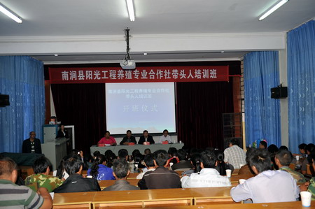 南涧县冯志宏副县长在开班仪式上强调了三点,一是要通过在座的养殖专业户把云南省网上投票获得六大名鸡之冠的南涧“无量山乌骨鸡”推出去,打造一个品牌,二是进一步规范和扩大南涧县农民养殖合作社,三是高标准要求在座养殖专业户做一个现代企业家,通过全省著名企业带动走出去!
