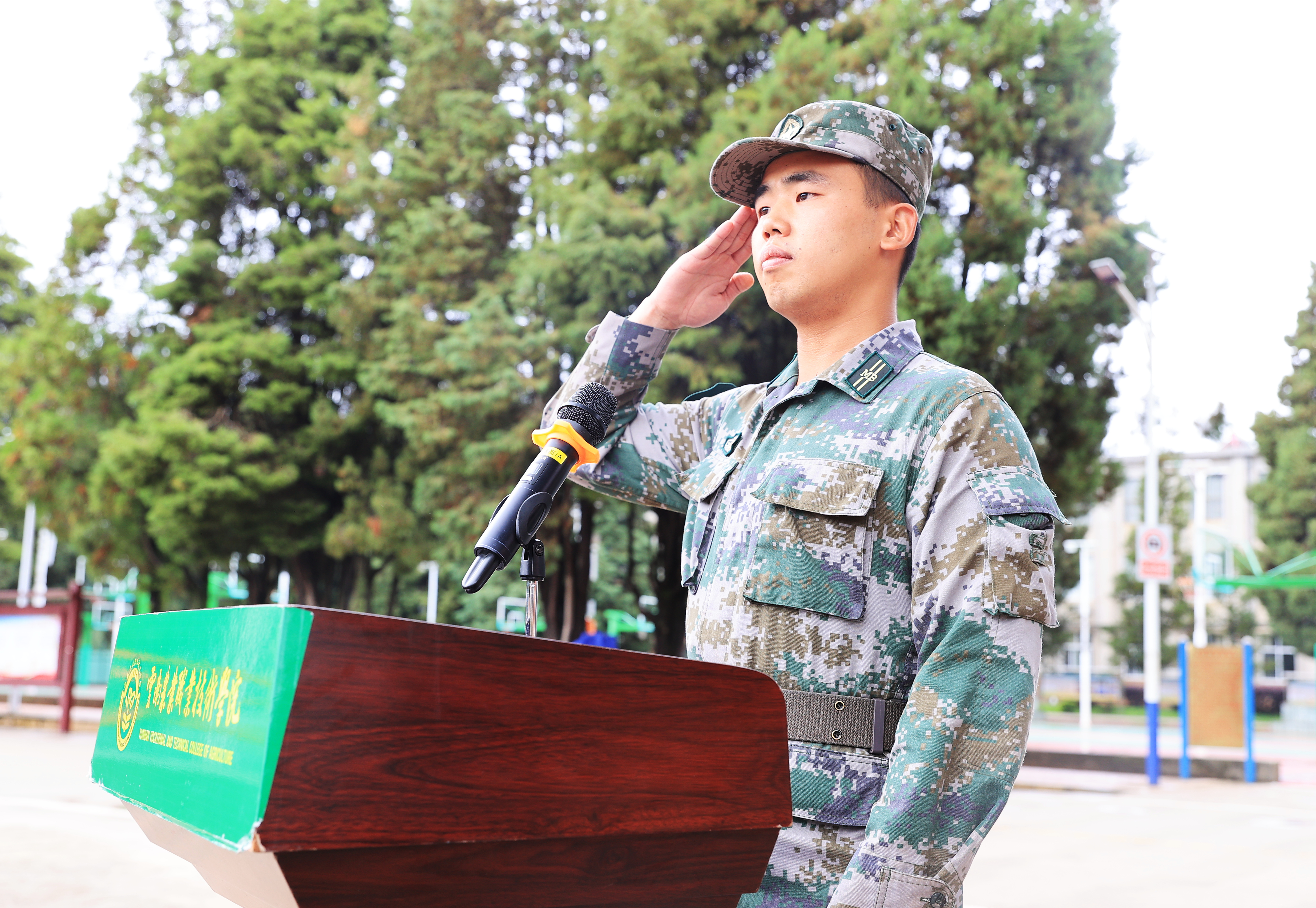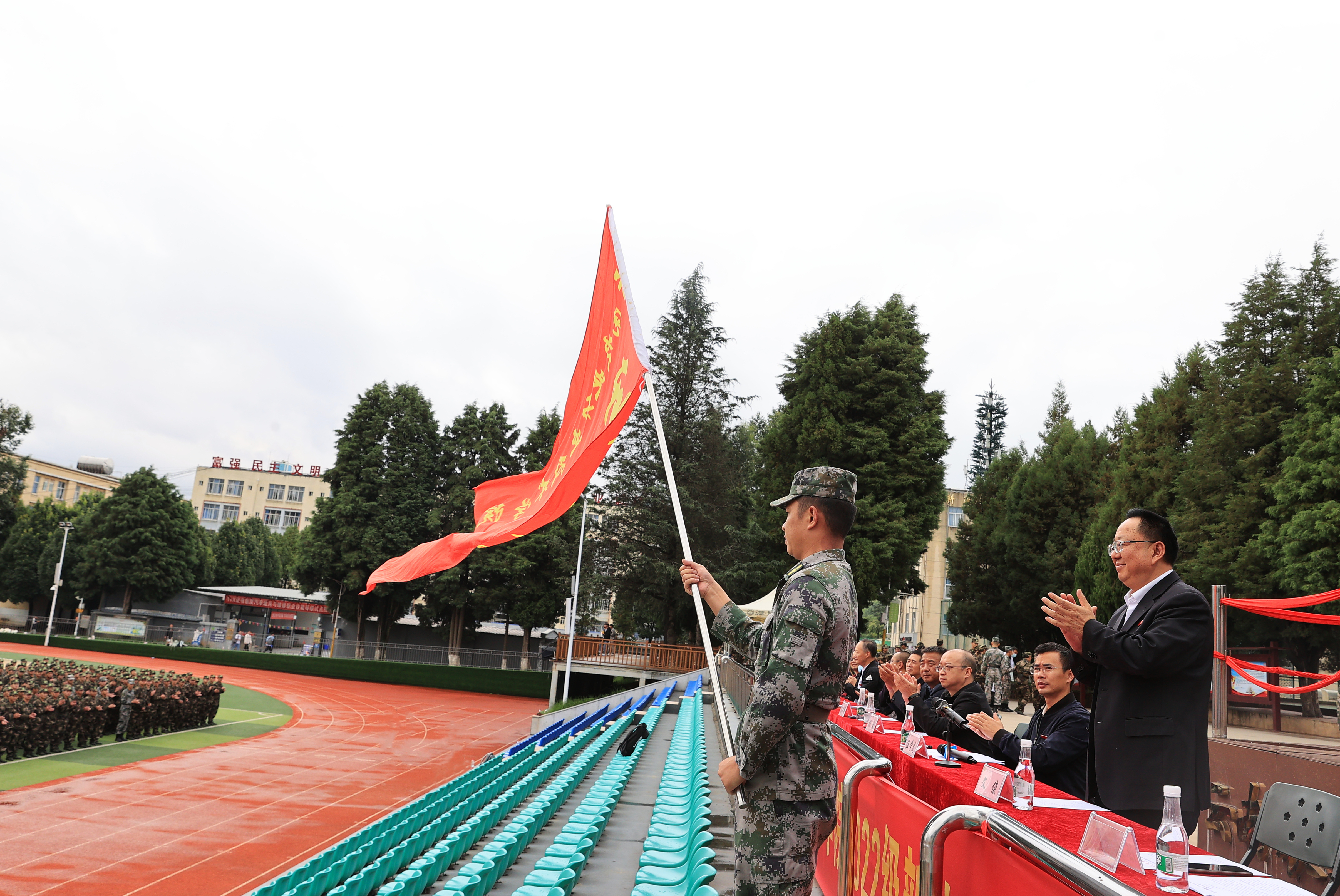 大会最后由学院党委书记文俊向军训团授旗。本次开学典礼暨军训动员大会在《人民军队忠于党》的歌声中落下帷幕,为期半月的军训就此开始!
