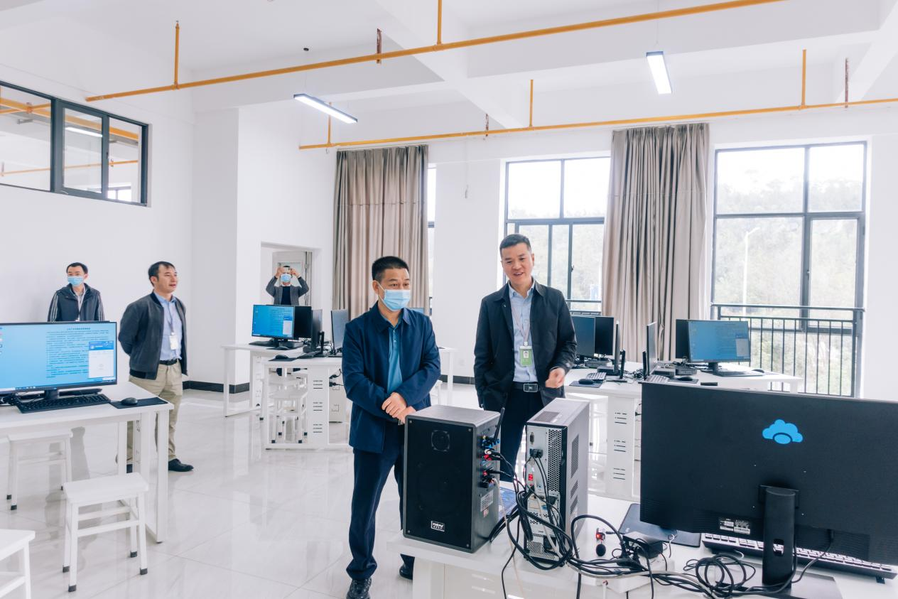 首先,郭宏主任一行先后考察教学楼大厅、中心机房、职业礼仪训练中心、一站式服务大厅、一站式综合调度指挥中心、体育馆、综合食堂、双创示范街区、图书馆等学生活动公共区域,详细了解云安产业学院硬件设施、教学组织、学生服务工作等运营情况,对云安产业学院建设给予了高度的认可与评价。