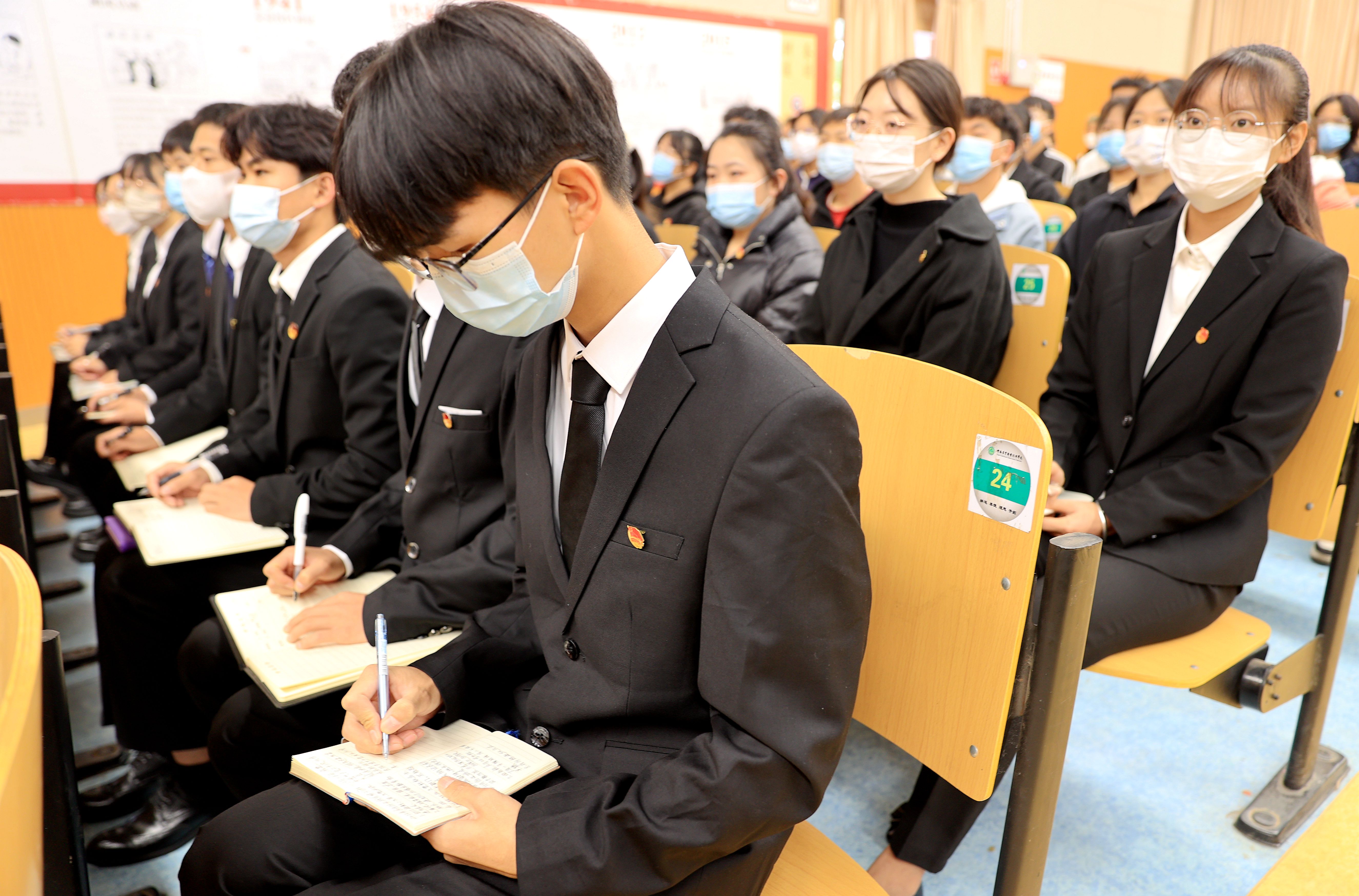 茭菱校区A2栋401报告厅师生集中收看党的二十大开幕会盛况