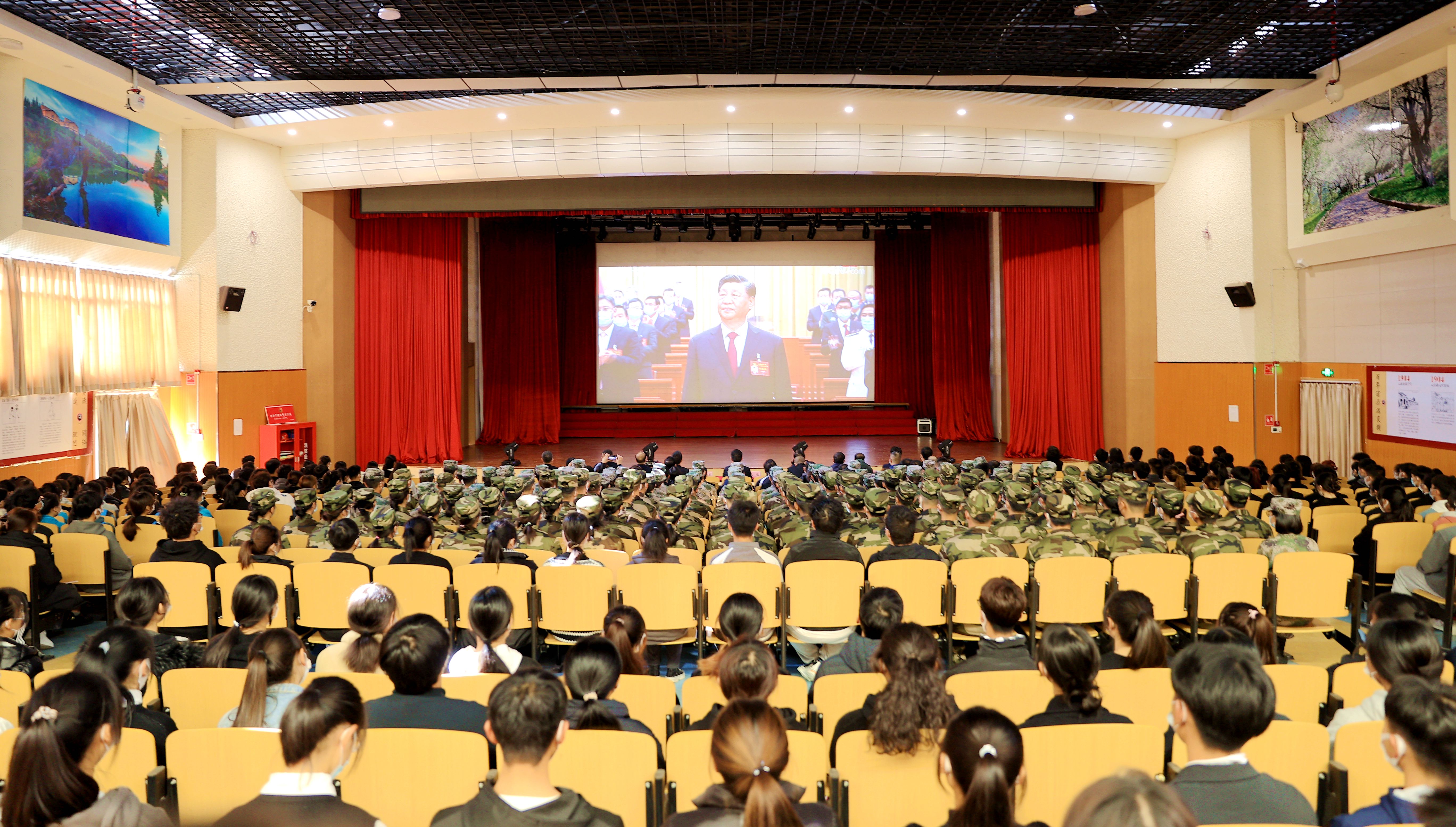 小哨校区蚕桑礼堂师生集中收看党的二十大开幕会盛况
