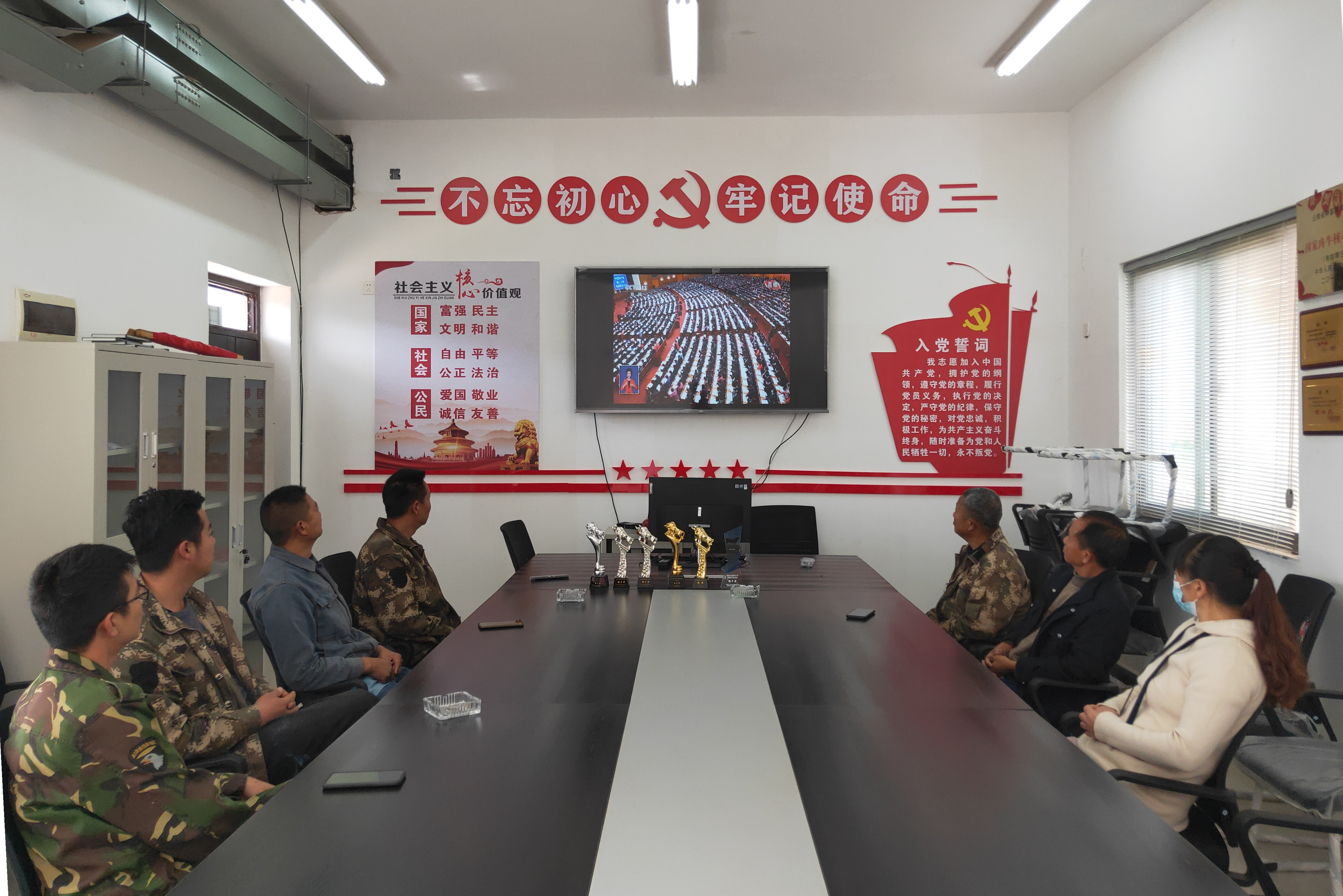 马龙基地会议室教师集中收看党的二十大开幕会盛况