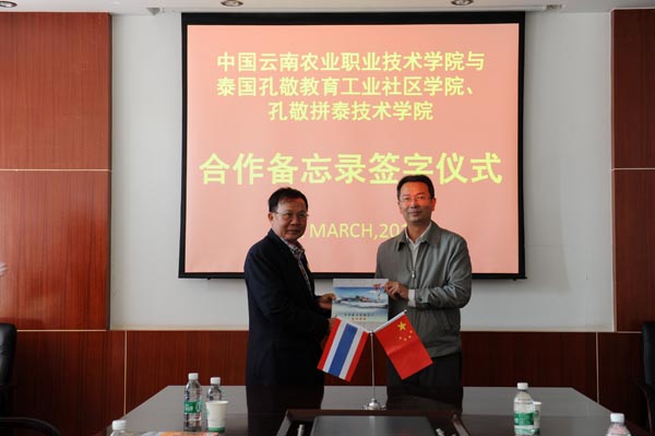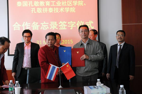 3月31日上午10:00,beat365官网与泰国孔敬教育工业社会学院、孔敬拼泰技术学院举行合作备忘录签字仪式。何明东副校长对贵宾的到来表示欢迎,并希望通过合作提高双方的影响力,增强中泰文化友谊,获得共同的发展。最后,李永忠校长分别与泰国孔敬工业社区教育学院、孔敬拼泰技术学院签订了在科研、教学和学生交流的合作方面框架协议。 (对外交流合作处供稿)