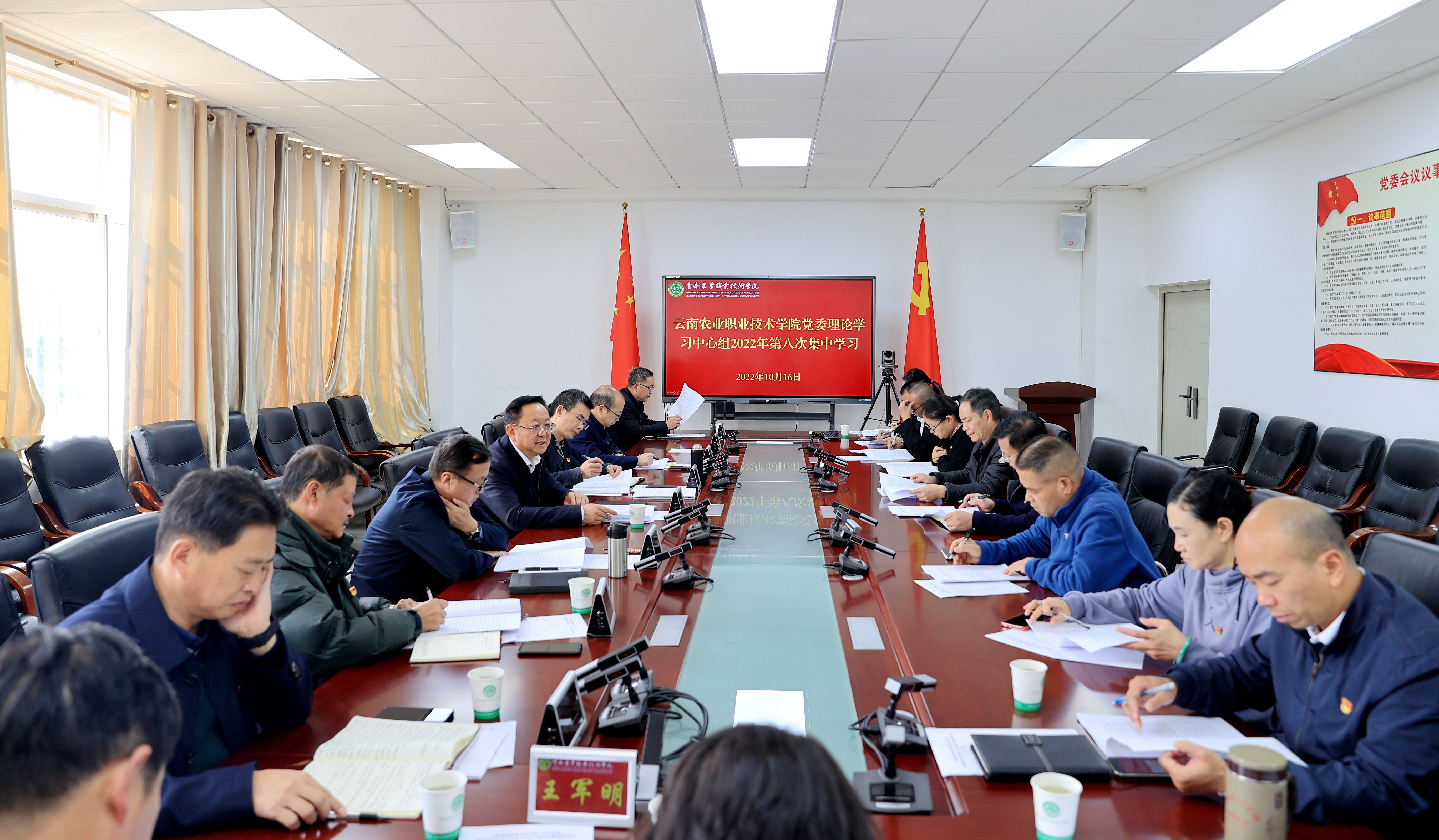通知中心10月16日下午,学院党委理论学习中心组(扩大)举行2022年第八次集中学习,第一时间专题学习党的二十大报告,开展座谈讨论。学院党委书记文俊主持会议并作总结讲话,党委理论学习中心组全体成员参加学习,各党群部门负责人、部分基层党组织负责人列席会议。