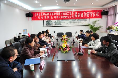 广州南雪药业有限公司昆明分公司总经理潘则宏在致辞中强调,与我院管理与信息工程系合作是一种荣幸,表示要努力把双方的合作办成功!展望在深化合作的基础上能够在科研项目合作上也有所拓展。