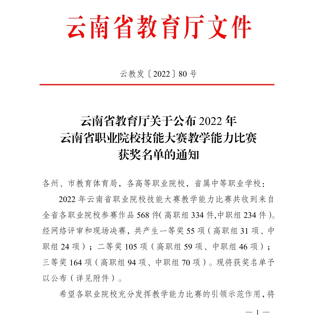 喜讯|我院教师在2022年云南省职业院校技能大赛教学能力比赛中获奖