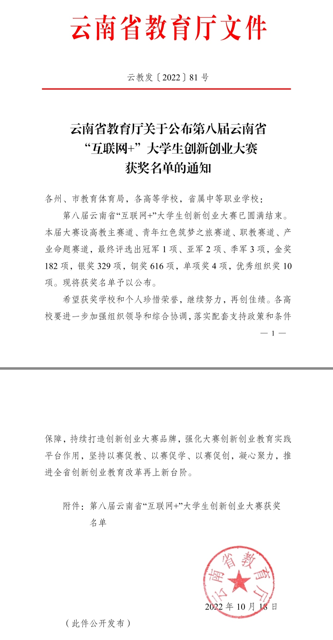 喜讯|我院师生在第八届云南省“互联网+”大学生创新创业大赛中获奖
