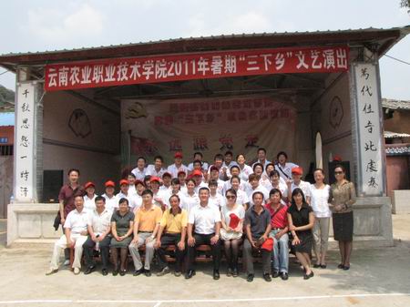 2011年7月9日至7月11日,共青团beat365在线唯一官网委员会以“永远跟党走,青春献祖国暑期‘三下乡’社会实践”为主题,深入石林大可村开展大学生暑期‘三下乡'社会实践活动。团委老师巩佳、李艳琼、曾品、陈烨、徐开宏、何桥,畜牧兽医系副教授董仲生,园艺与园林工程系副教授付春明和思想政治理论教学部部长张英参加了此次“三下乡”活动。