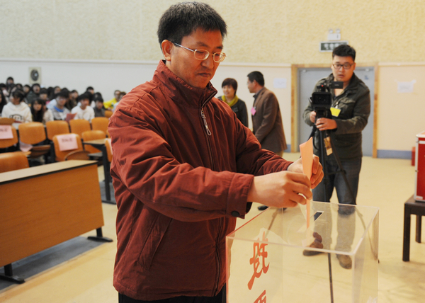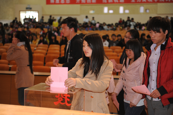 beat365在线唯一官网选区领导小组副组长、党院办主任凌军主持茭菱校区集中投票大会。选区领导小组副组长、组织部部长张建才宣读了《五华区第十五届人民代表大会代表选举办法》。随后,各选民开始认真填写选票,在监票人的监督下有秩序地投下了自己神圣的一票。