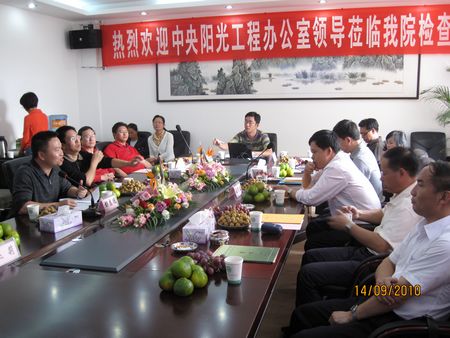 彭志远院长向中央阳光工程办公室领导简要汇报了我院的办学历史、办学宗旨、办学条件等,着重介绍了我院开展社会服务——农村劳动力转移培训、农民创业培训的具体做法和成绩经验:一是领导重视、机构完善,农民创业培训初见成效,二是加强联系、悉心指导,构建农民创业服务平台;三是学院2010年阳光工程农民创业培训实施安排。