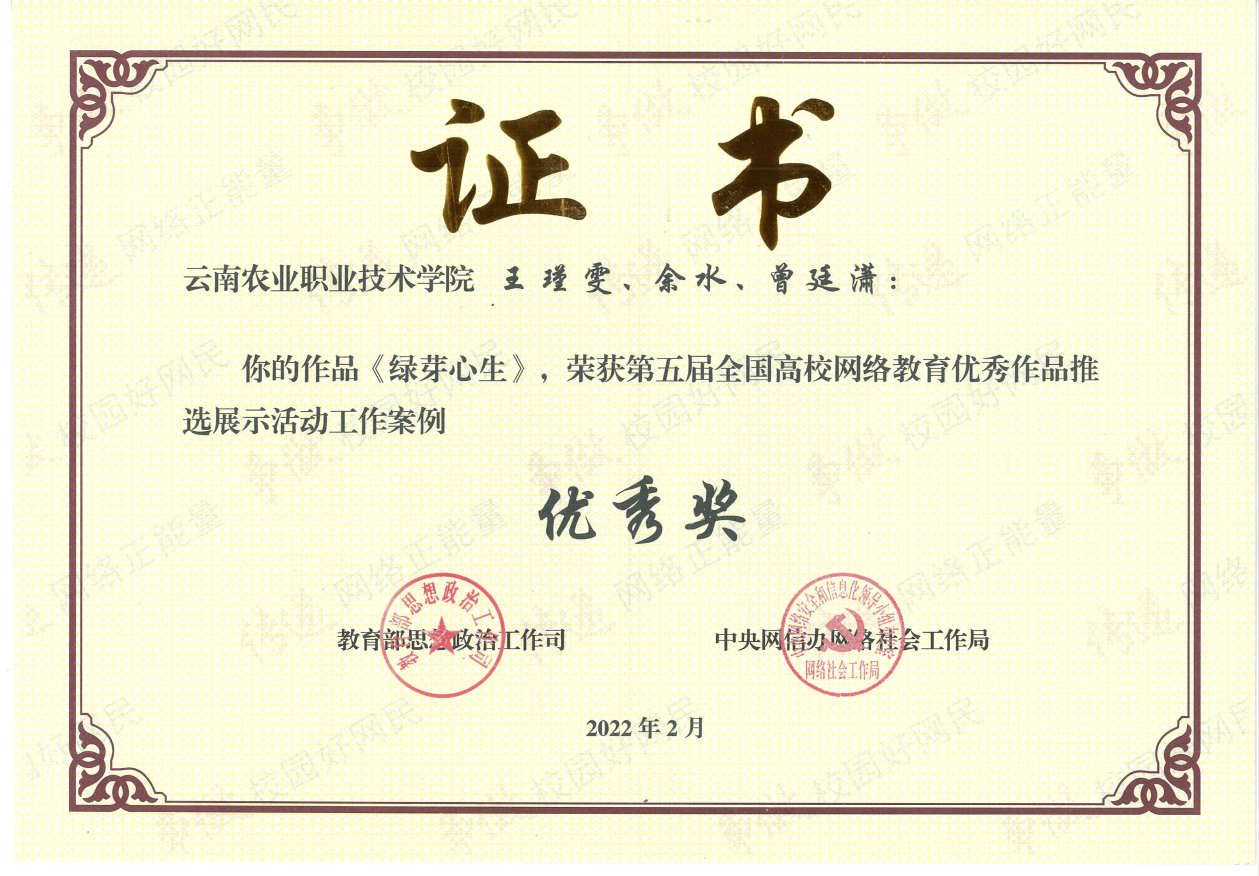 此前,经学院推荐、专家评选以及公示环节,该案例已在第五届云南省大学生网络文化节和高校网络教育优秀作品推选展示活动中荣获工作案例一等奖,被选送参加上述由教育部思想政治工作司主办的第五届全国高校网络教育优秀作品推选展示活动。