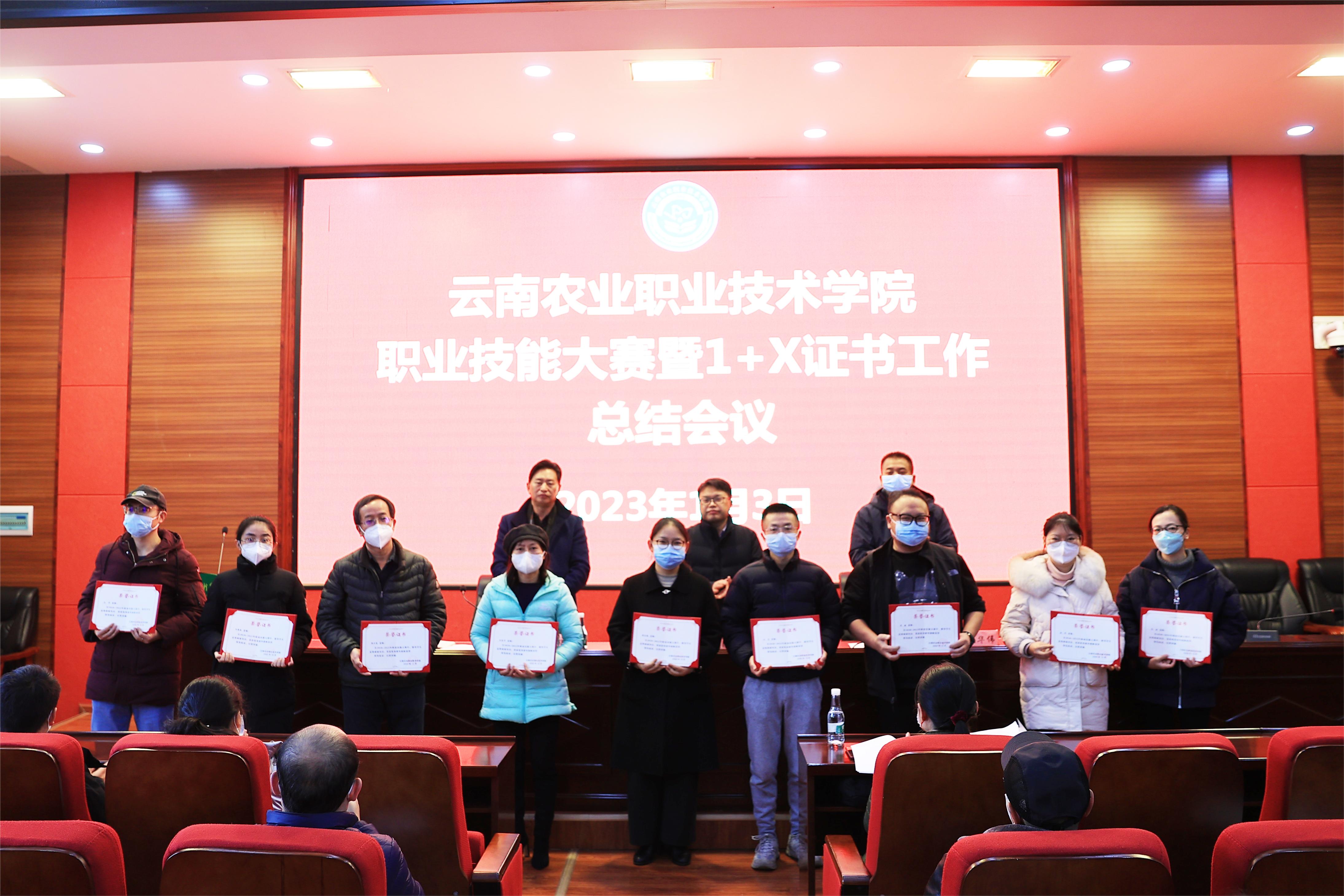 会上,实践教学中心主任刘峻蓉对学院三年以来职业技能大赛暨“1+X”证书工作开展情况进行了总结汇报。田应华副院长宣读了职业技能大赛及1+X工作的获奖名单,与会的学院领导为20名获奖选手、6个X证书优秀证书团队及3个获奖的二级学院颁发了荣誉证书。食品药品与大健康学院和工程学院分别就技能大赛赛项承办及“1+X”证书工作作了交流发言,王丹、温顺斌两位老师作为职业技能大赛优秀指导教师代表作了交流发言。