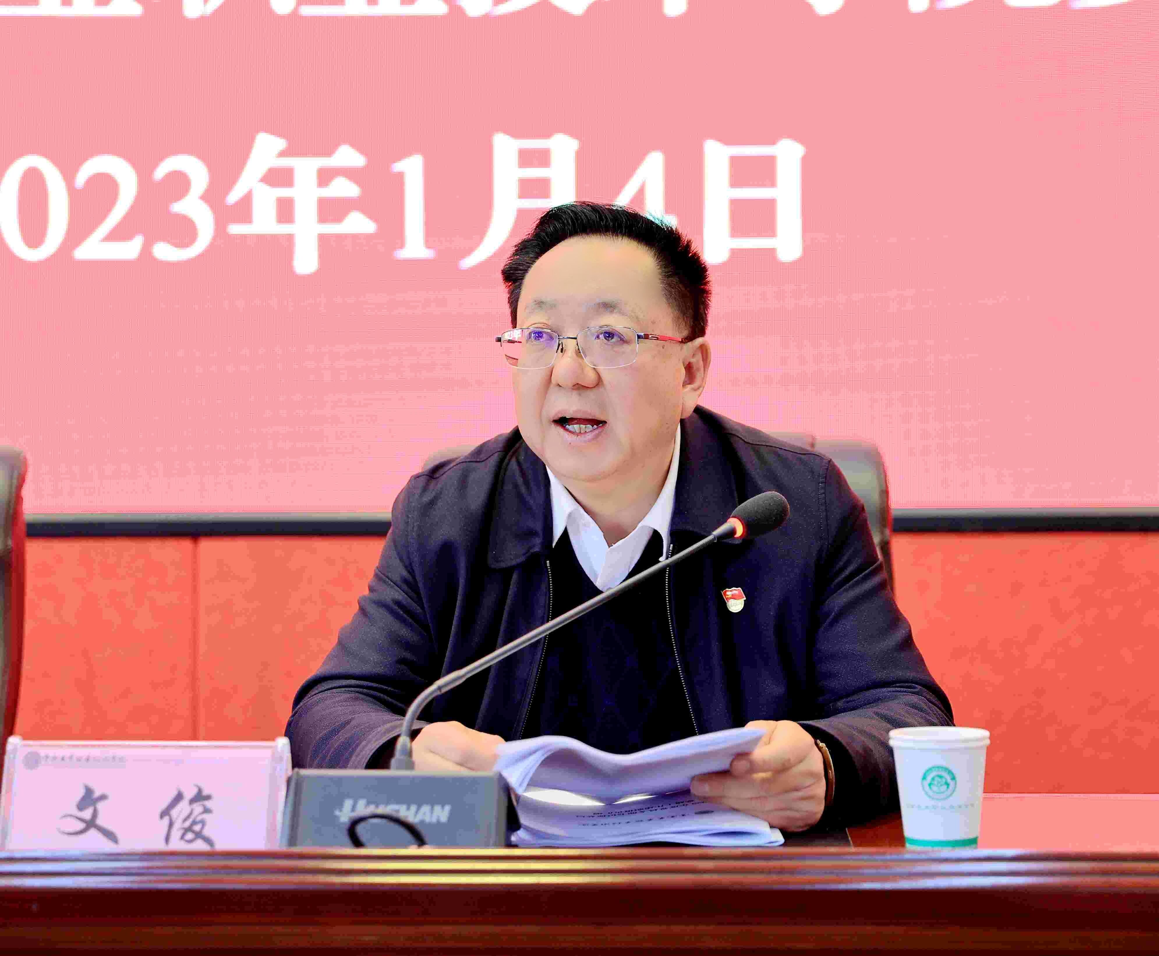 党委书记文俊主持会议并作总结讲话