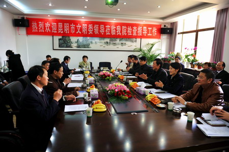 122下午,昆明市、五华区、龙翔办事处三级检查组莅临我院检查精神文明建设工作,评定学院是否有资格申报市级文明单位。