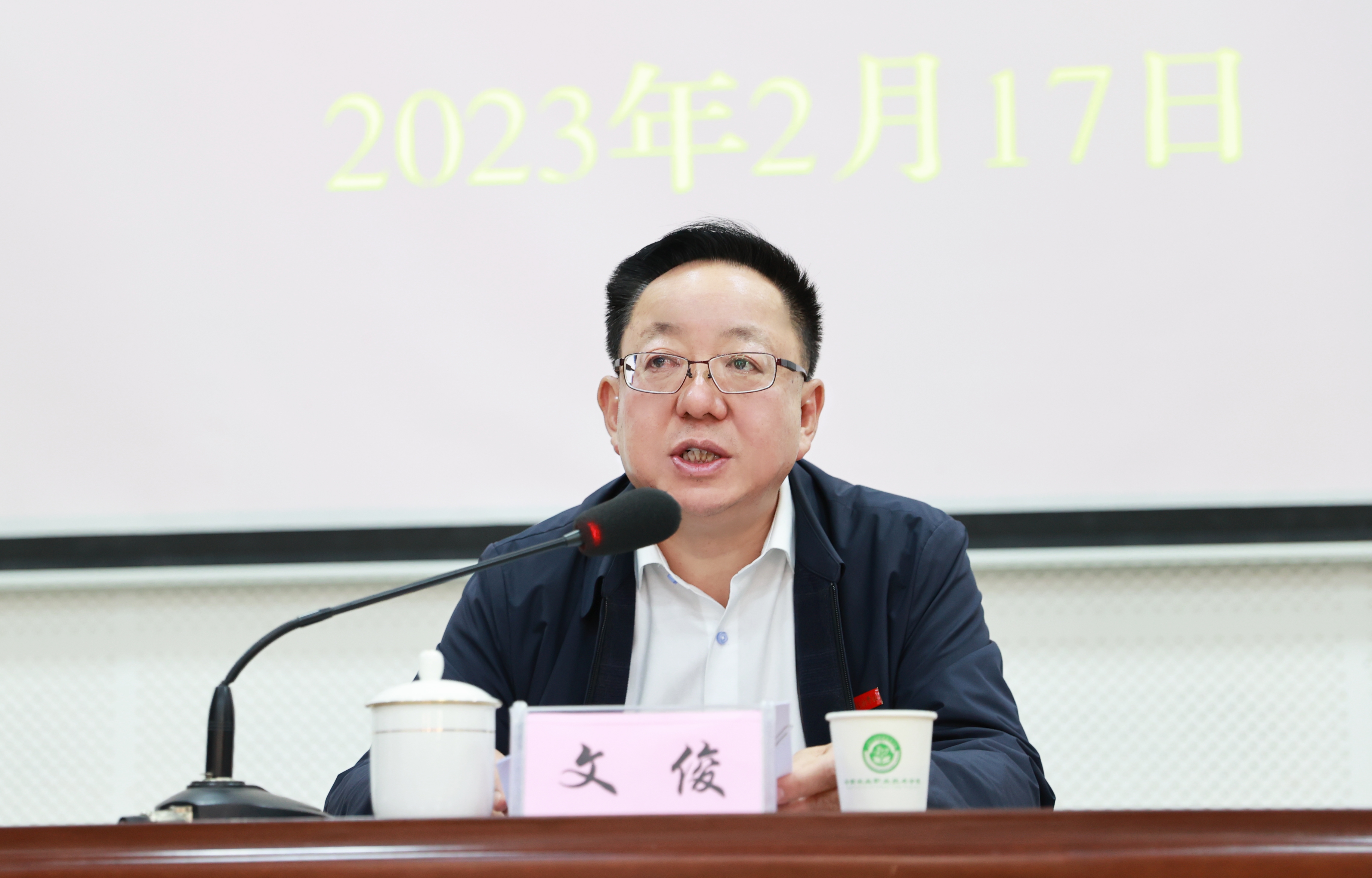 文俊书记在总结讲话强调,要统一思想,认清高质量发展势在必行,职业教育高质量发展是“国之大者”,“省之要事”,关乎农职命运,未来三年唯有通过高质量发展才能实现学院长远发展目标。文俊书记要求,学院高质量发展是时代发展的要求,也是学院持续发展的必由之路、实现跨域的光明之路、创造历史的奋进之路。全院各级党组织、广大党员干部对重点任务要亲自上手亲自抓,把工作抓紧抓细抓实。充分调动广大师生的积极性创造性,引导广大师生积极投身学院改革发展,将会议谋定的“施工图”,用实际行动变成“实景图”。