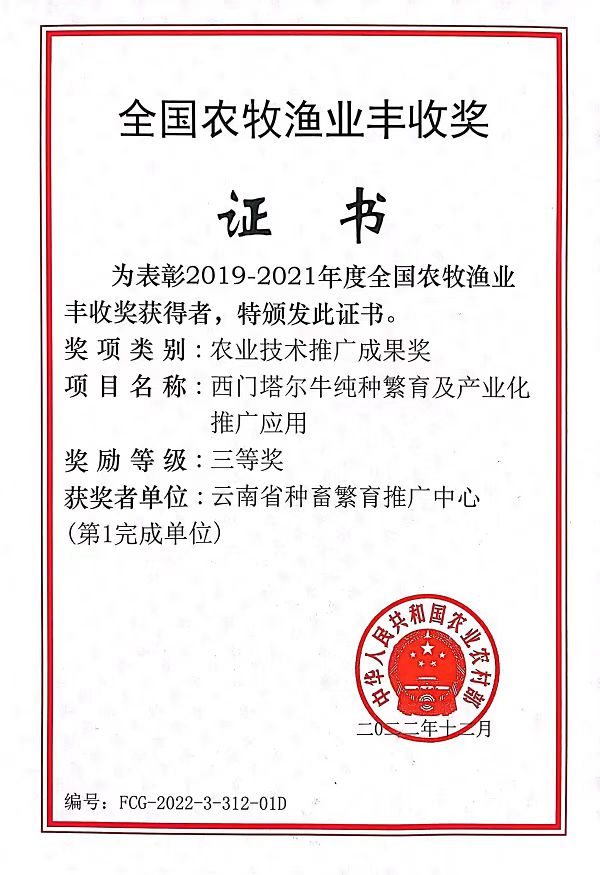 下一步,我院种畜繁育推广中心将继续开展实施西门塔尔牛纯种繁育供种以及冻精改良产业化推广应用,提升肉牛群体质量和养殖经济效益,助力我省缩短同发达省区的差距,助力乡村振兴。(云南省种畜繁育推广中心种牛场 供稿/文:和嘉荣/图:刘绍贵/一审:刘绍贵、二审:唐丽群、三审:杨筱莹/一校:和嘉荣、二校:唐丽群、三校:杨筱莹/责任编辑:唐丽群)