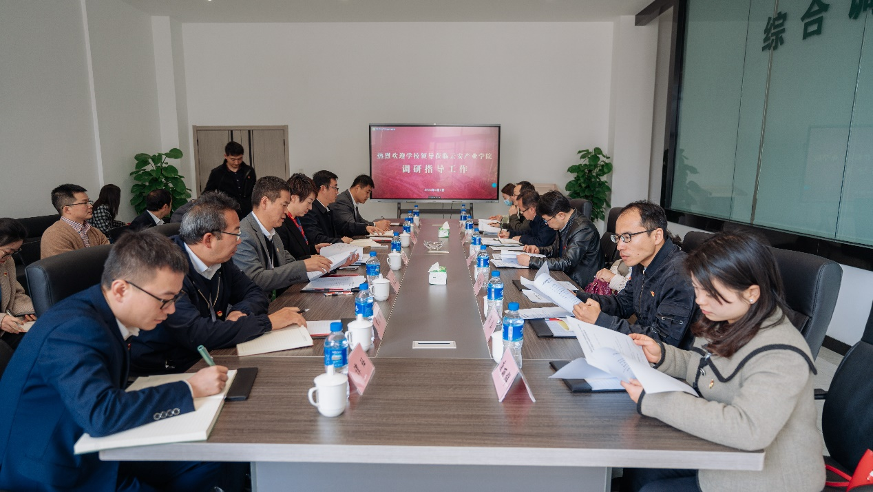 本次调研活动,学校领导一行对云安产业学院的工作开展给予了充分的肯定,对未来的发展提出了一系列建设性指导性意见。云安产业学院将会把会议精神和相关部署进一步细化,融入到未来的发展建设中去,有的放矢推进、落实学院工作,助力学校高质量发展。(云安产业学院供稿/文:赵丽妍/图:梁宇/一审:鲜丹妮、二审:李一源、三审:杨筱莹/一校:赵丽妍、二校:鲜丹妮、三校:龙臻/责任编辑:龙臻)