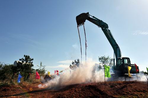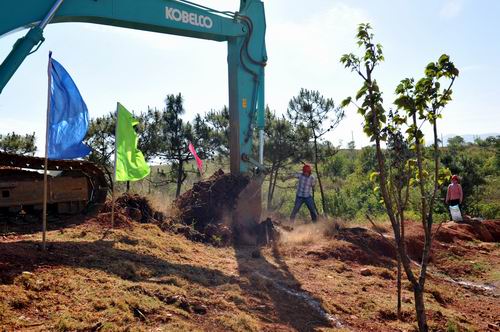 此时,建设工地上燃放起火红响亮的炮竹声;挖掘机铲起了工程的第一铲土;滇陆种猪选育扩繁建设项目正式开工!(党委宣传部 供稿)