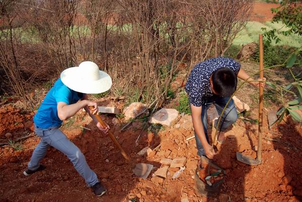 植树活动伊始,学院副院长俞浩对本次植树活动发表讲话,并对此次植树造林活动对于学院校园环境的改善与美化作出肯定。接着,园艺与园林工程系李友老师向同学们详细介绍了种植树苗的相关知识、方法与重点。在分组分任务后,同学们在专业老师的指导下开始对树苗进行栽植。栽植的树苗有三角枫、拟单性木兰和滇朴,共计700株。在植树活动中,结合专业特色,提高了同学们专业动手能力,同时也为专业课的实践教学环节提供实训场所。