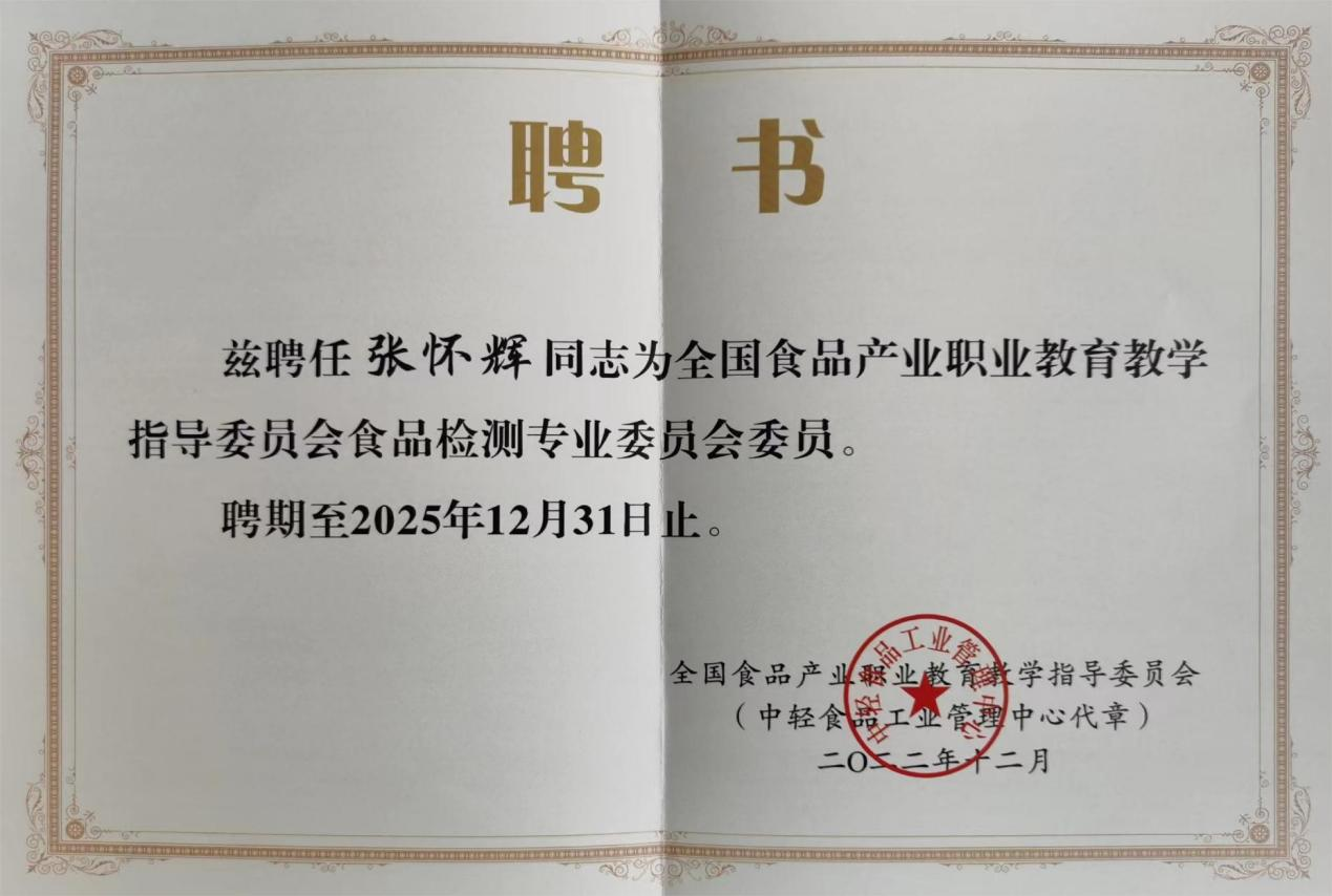 我院教师入选全国食品产业职业教育教学指导委员会食品检测专委会委员