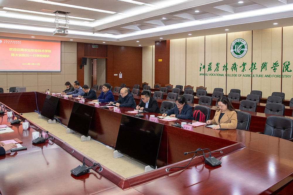 3月22日,调研组一行来到江苏农林职业技术学院交流学习。江苏农林职业技术学院学院党委副书记、院长潘永圣简要介绍了学院事业发展情况,双方就专业建设、实践实训条件建设、科技创新与社会服务、人才人事制度改革等方面进行了深入交流,并分享了各自的经验做法。会后,陈太安院长一行还参观了实训室、学院第一实训基地和第二实训基地。