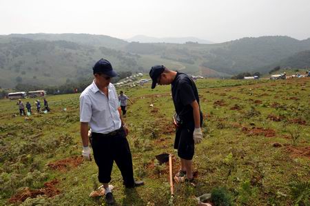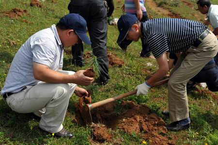 我院十位教职工在俞浩副院长的带领下,积极响应省农业厅的号召,驱车前往寻甸参加向杨善洲同志学习义务植树活动。我院教职工与省农业广播电视学校的教职工一道,经过一个上午的努力工作完成了“学校口”义务植树区块共300余株松树的任务。大家头顶烈日,挖坑、种树、培土、浇水,每一道工序都一丝不苟。当天农业厅所属单位的干部职工共植树12000株,覆盖面积达40亩,为绿化美化大好河山添砖加瓦。(宣传部供稿)