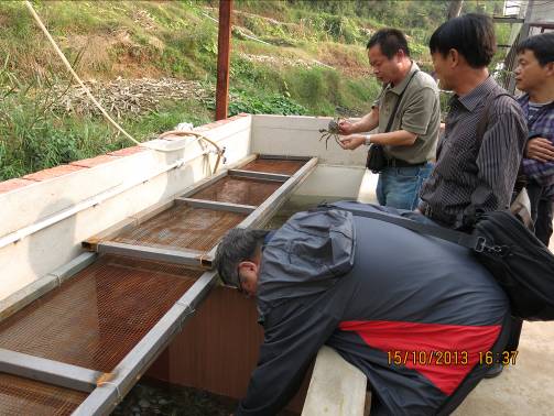 1015全国著名的河蟹养殖专家、上海海洋大学教授、博士生导师、农业部渔业科技入户首席专家王武教授、马旭洲博士等一行5人应邀到昆明市五华区沙朗乡,考察我院水产养殖专业校外实训基地——沙朗大闸蟹生态养殖农庄。