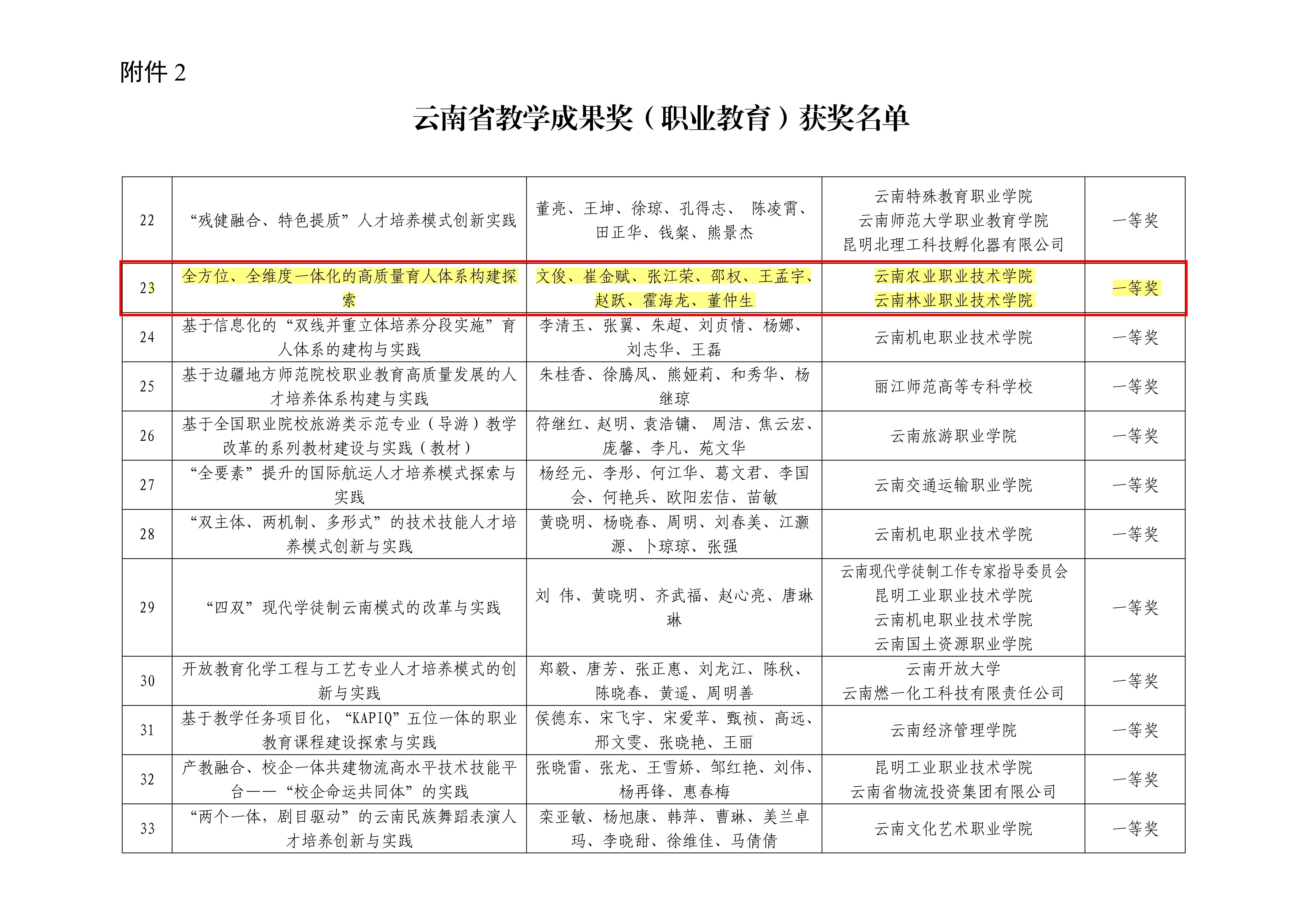 近日,云南省教育厅、云南省人力资源和社会保障厅公布了《关于表彰云南省教学成果奖的决定》,经单位申报、专家评审、网上公示和云南省教学成果奖评选表彰领导小组审定,省教育厅、省人力资源和社会保障厅决定授予289项申报项目成果2022年云南省教学成果奖。