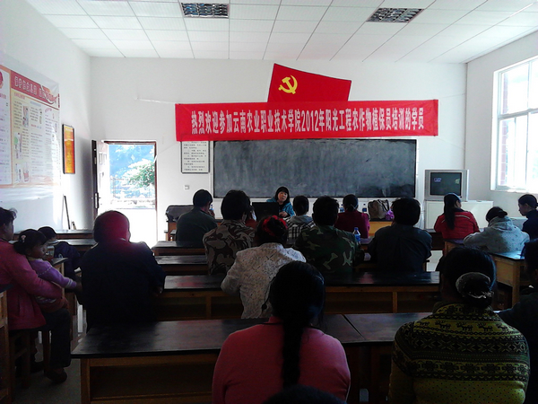 为扎实推进“四群教育”活动,20121119日—124日,学院在深入调研的基础上,结合富民县农业农村科技发展需求,充分发挥中央农村劳动力培训阳光工程项目的示范带动作用和学院师资优势,重点围绕学院“四群教育”挂靠联系村——麦依甸村委会、龙马村委会、西核村委会、石板沟村委会、则核村委会、糯支村委会、麦场村委会、白石岩村委会等,开展农作物植保员、村级动物防疫员、种子经销员、水产养殖员培训,提升富民县现代农业发展水平。