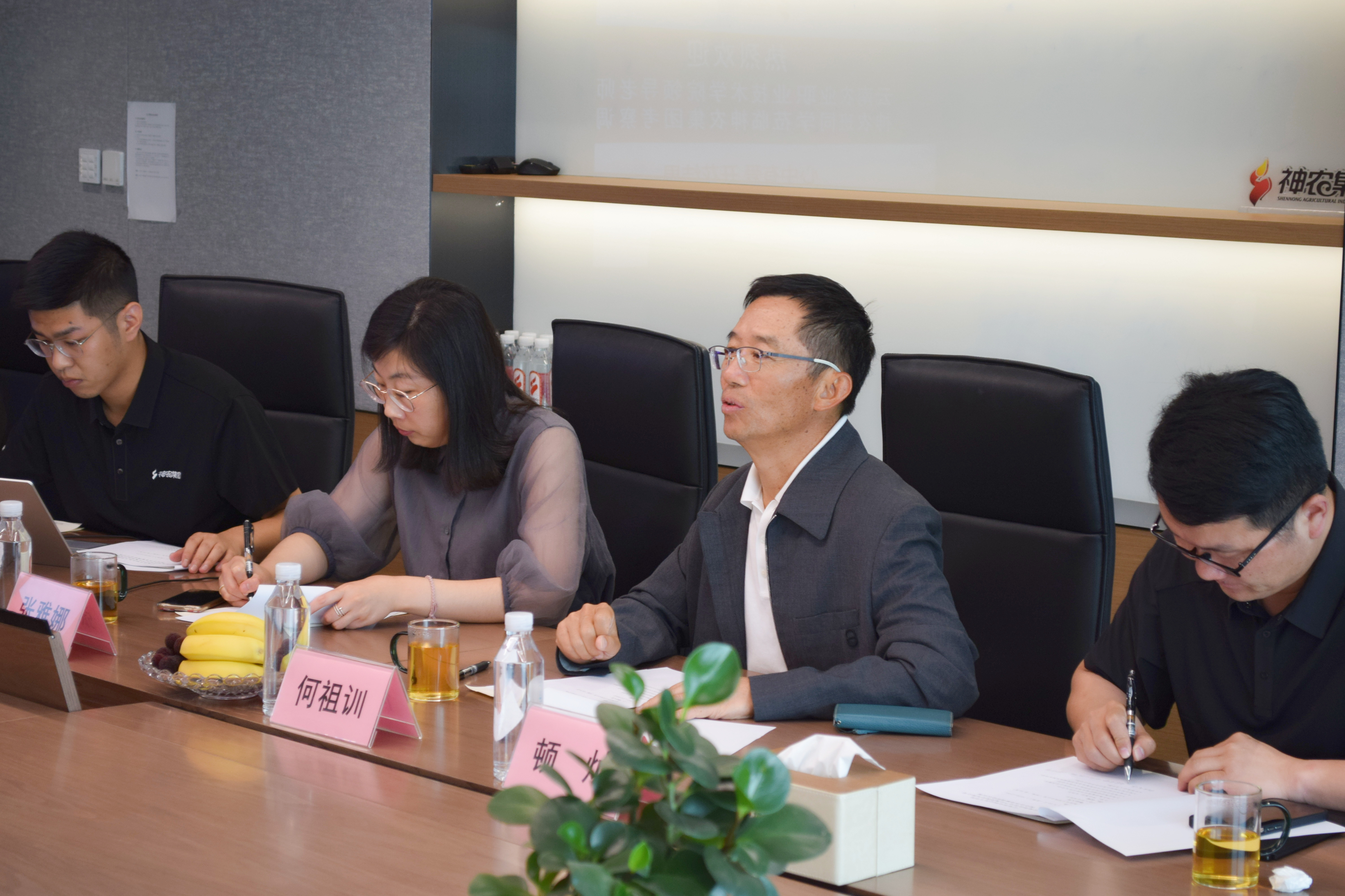 神农集团何祖训董事长表示,产教融合、校企合作一直是职业教育的基本办学模式,也是职业教育最突出的办学优势。他强调“心中有爱、开花结果”为神农集团的企业理念,希望学院在教学方面能够培养务实能干的技术型人才,同时对学院一如既往的支持与信任表示感谢。